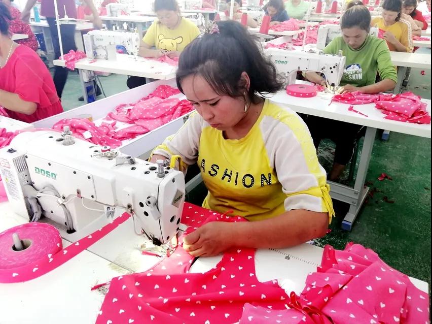 今年22岁的村民古丽扎尔·阿布都沙迪克也是初中毕业,2019年7月底到工厂工作,由于缝纫技艺熟练表现突出,被企业聘用为车间班长,每月有1500元左右工资,她高兴的说:“家门口的服装厂让我足不出户实现了就业,成为了一名产业工人,依靠自己的双手劳动挣钱改善家庭生活,感谢党和政府的好政策,让我从家庭妇女成为了收入稳定的工人!”
