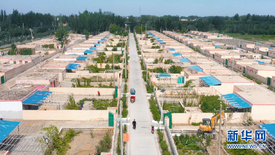 俯瞰英阿日希村,富民安居房整齐排列,村容干净整洁。新华网发王世鑫摄
