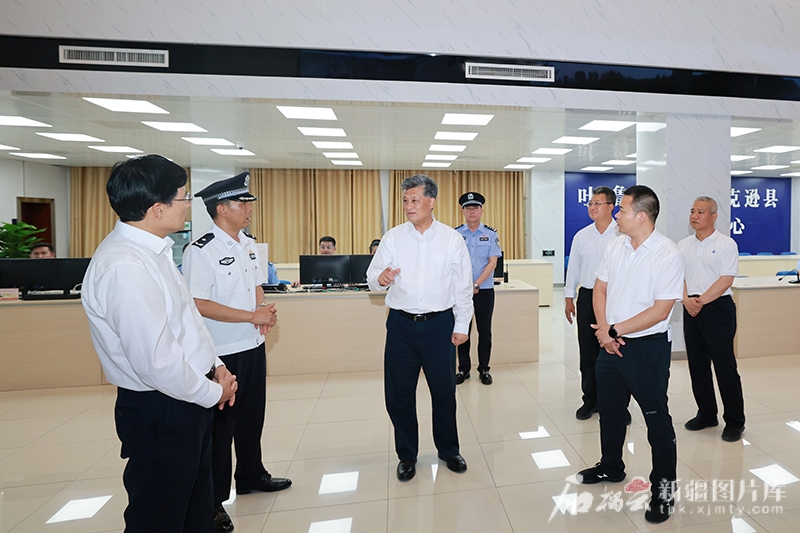 6月17日,自治区党委书记马兴瑞在托克逊县公安局,详细了解基层维护稳定措施落实、风险管控等情况。石榴云/新疆日报记者崔志坚摄