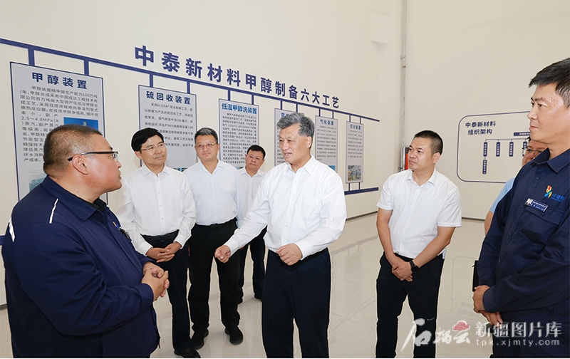 6月17日,自治区党委书记马兴瑞在新疆中泰新材料股份有限公司,详细了解年产100万吨煤制甲醇项目生产运行情况。石榴云/新疆日报记者崔志坚摄