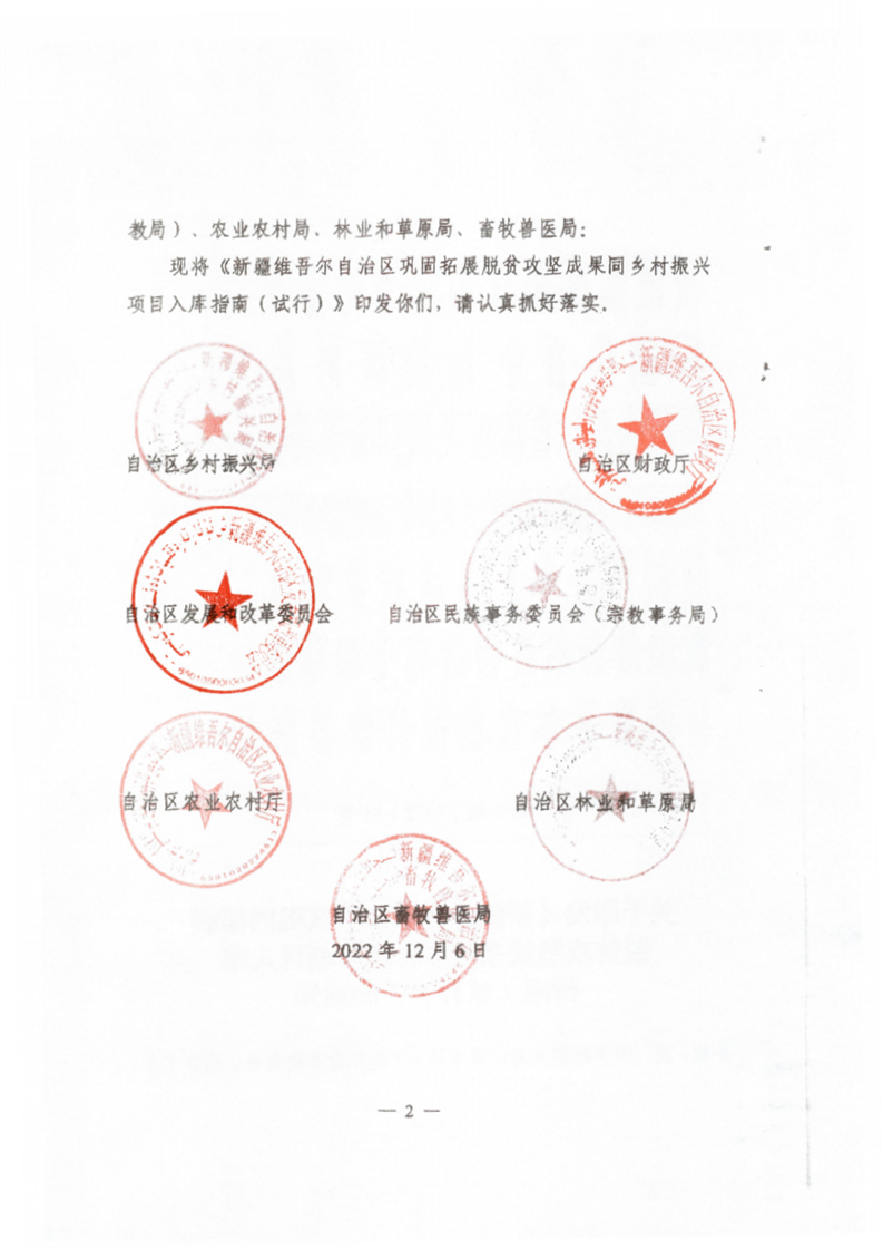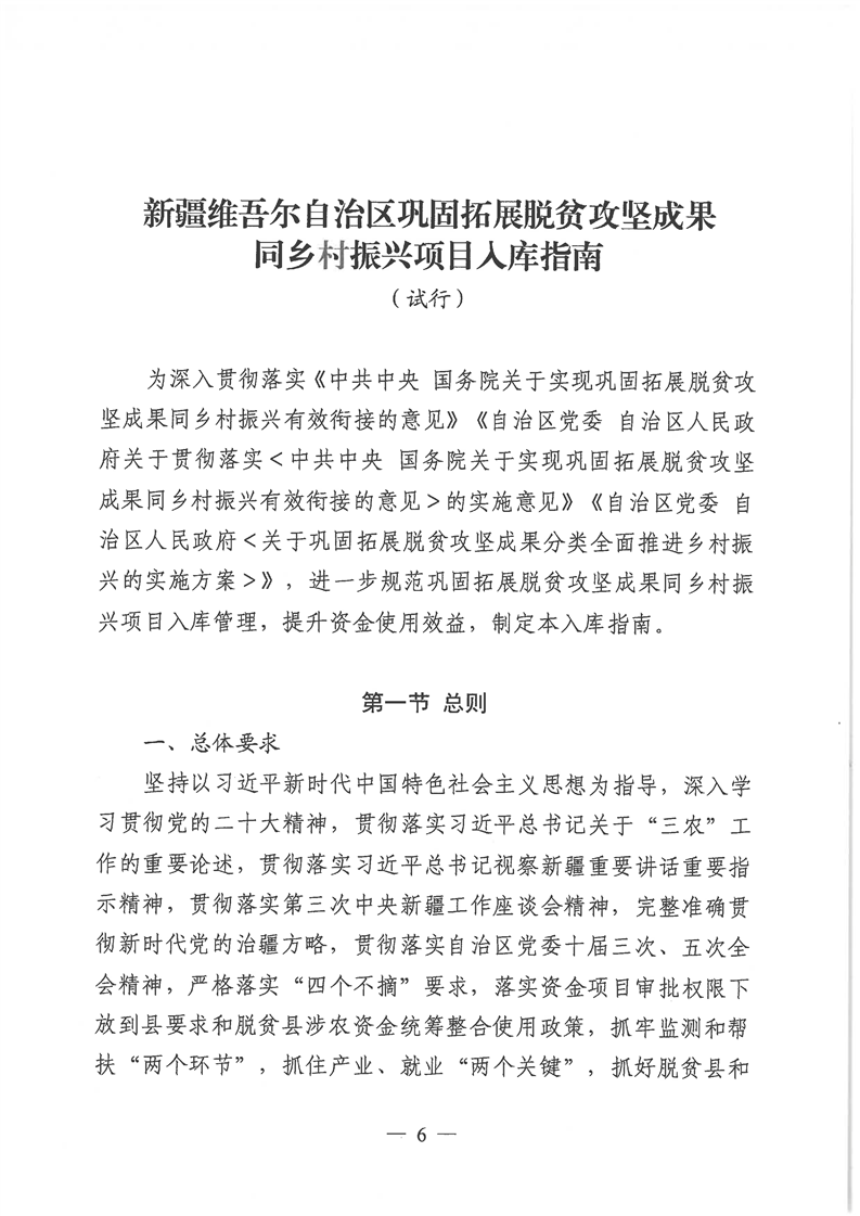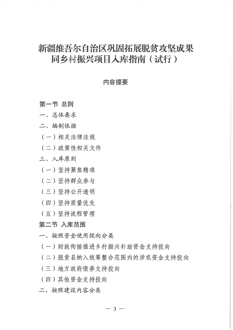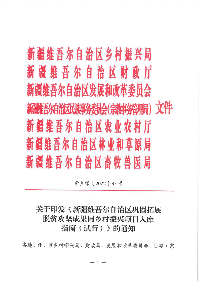 关于印发《新疆维吾尔自治区巩固拓展脱贫攻坚成果同乡村振兴项目入库指南(试行)》的通知