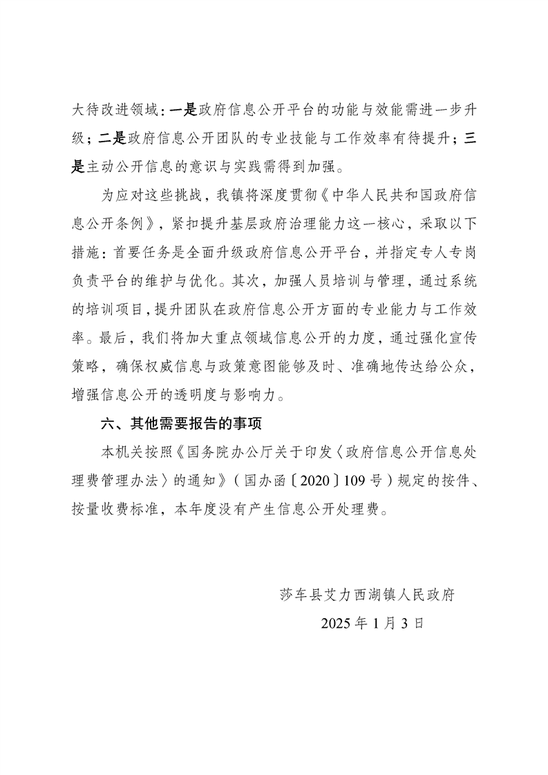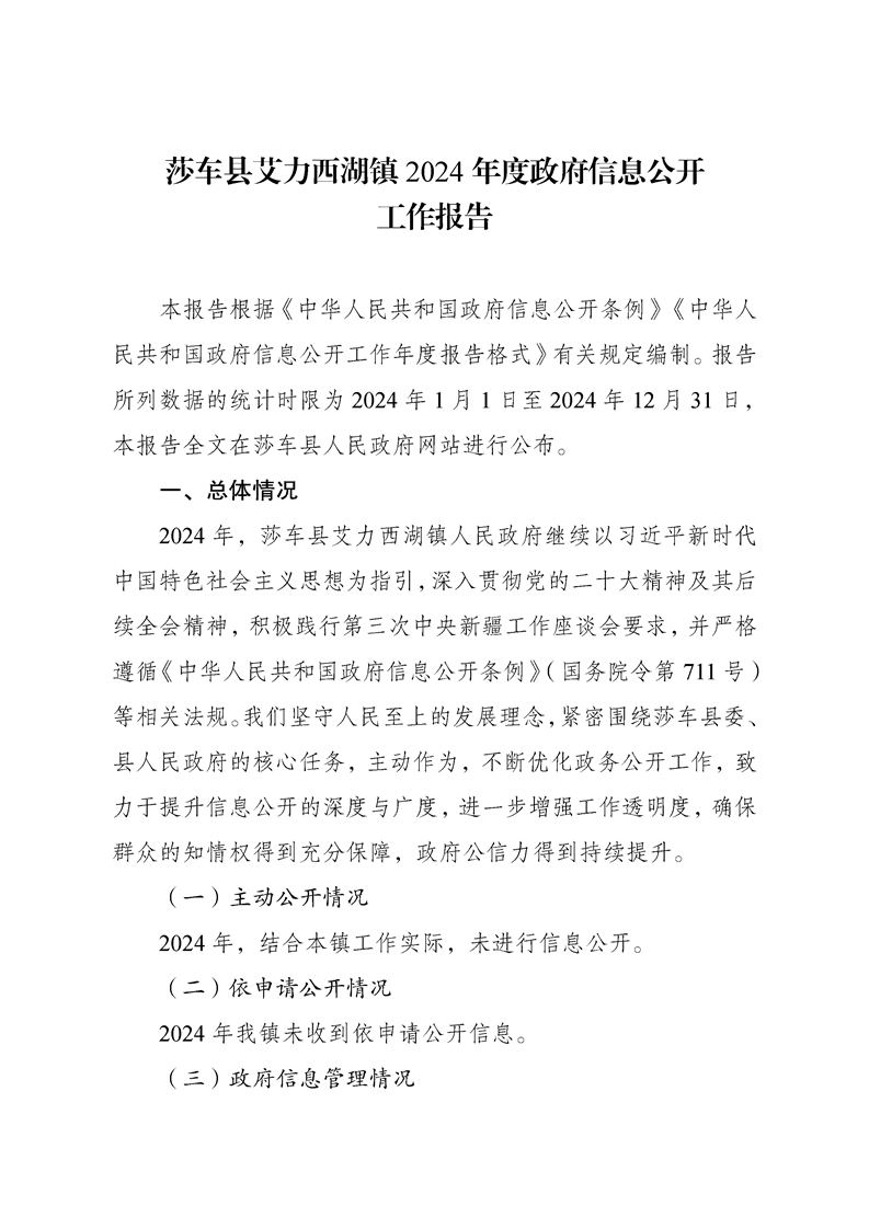 莎车县艾力西湖镇2024年度政府信息公开工作报告