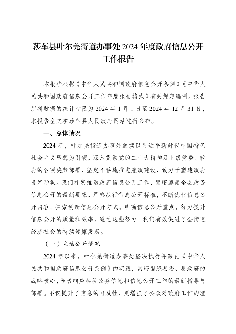 莎车县叶尔羌街道办事处2024年度政府信息公开工作报告