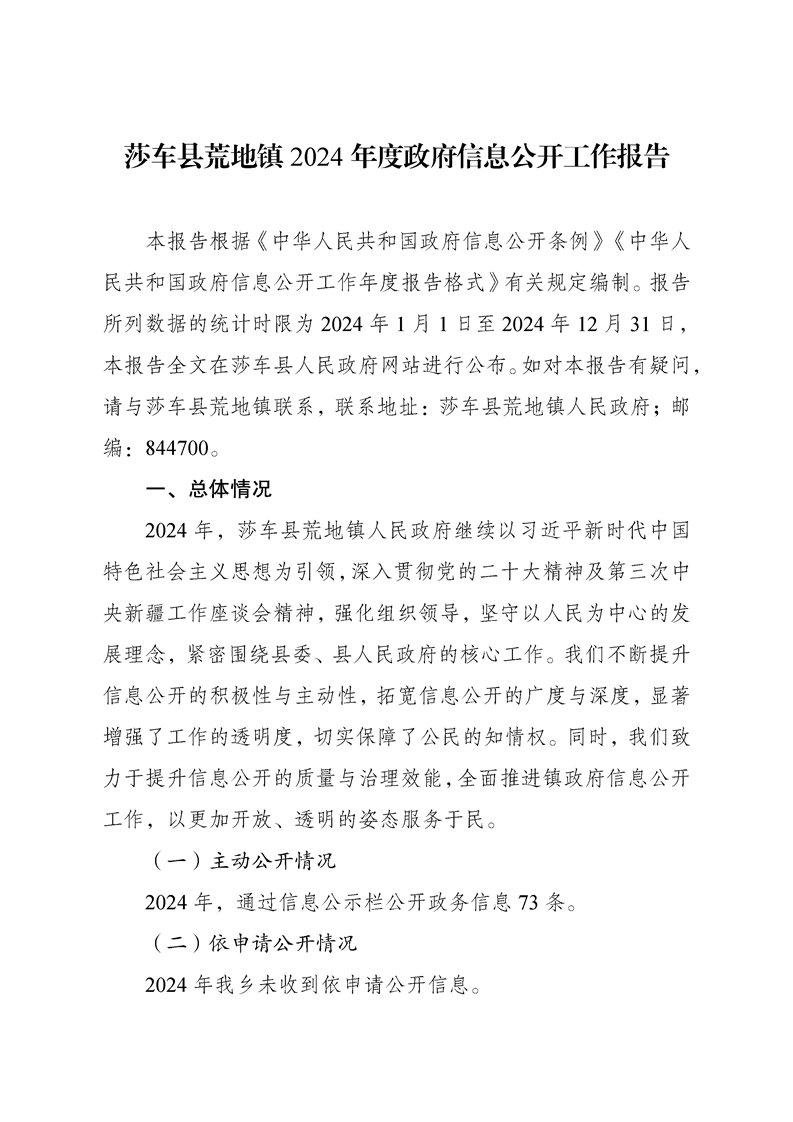 莎车县荒地镇2024年度政府信息公开工作报告
