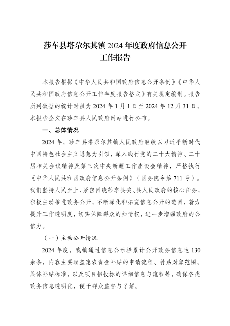 莎车县塔尕尔其镇2024年度政府信息公开工作报告