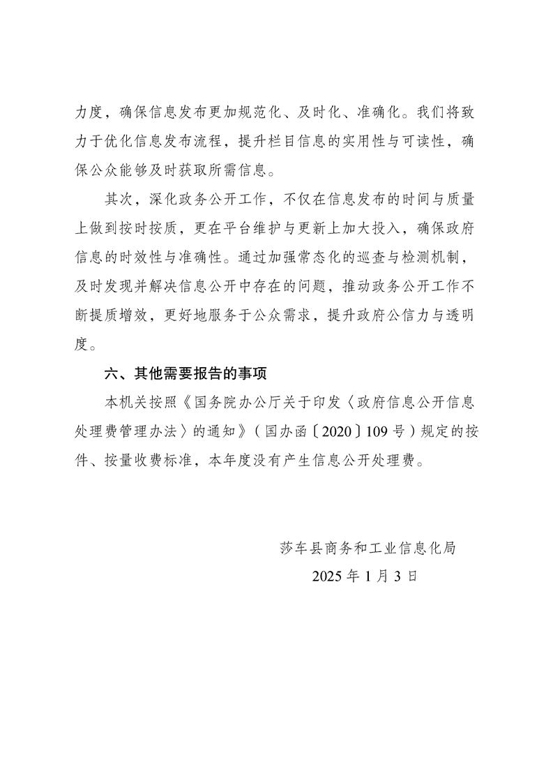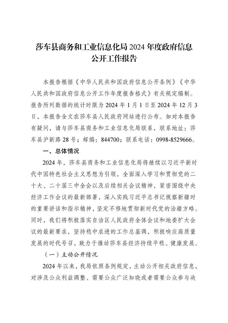 莎车县商务和工业信息化局2024年度政府信息公开工作报告