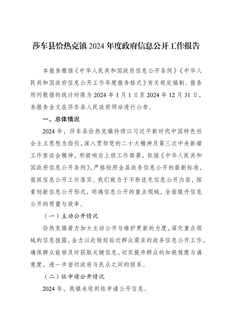 莎车县恰热克镇2024年度政府信息公开工作报告