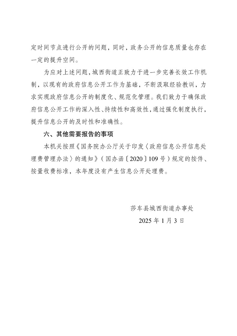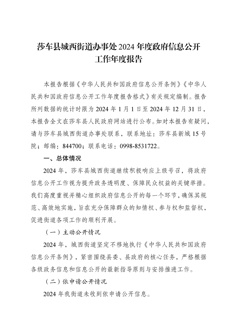 莎车县城西街道办事处2024年度政府信息公开工作报告