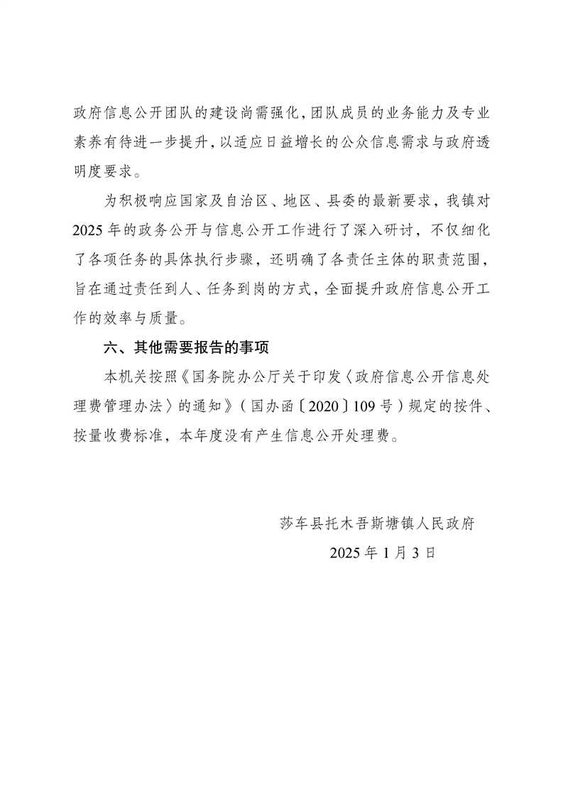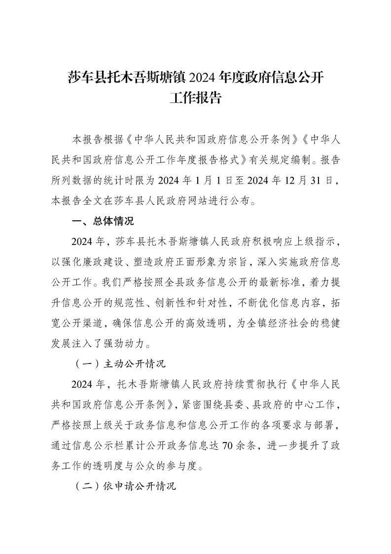 莎车县托木吾斯塘镇2024年度政府信息公开工作报告