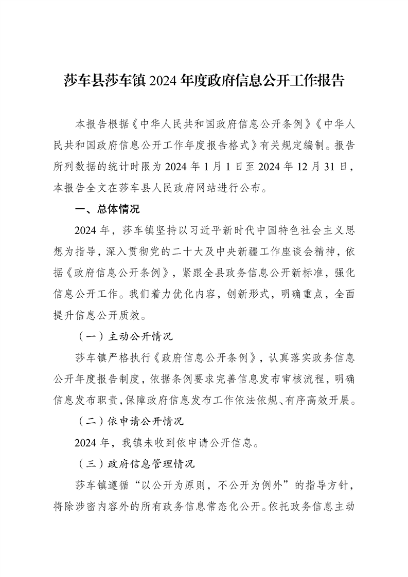 莎车县莎车镇2024年度政府信息公开工作报告