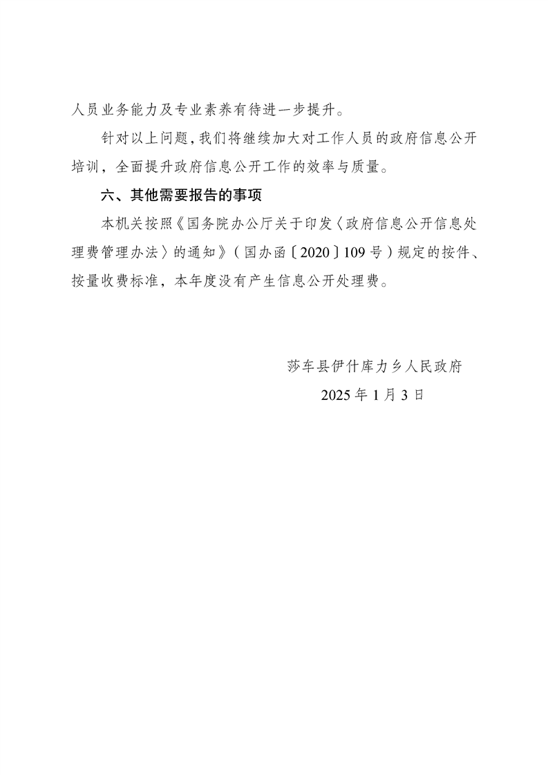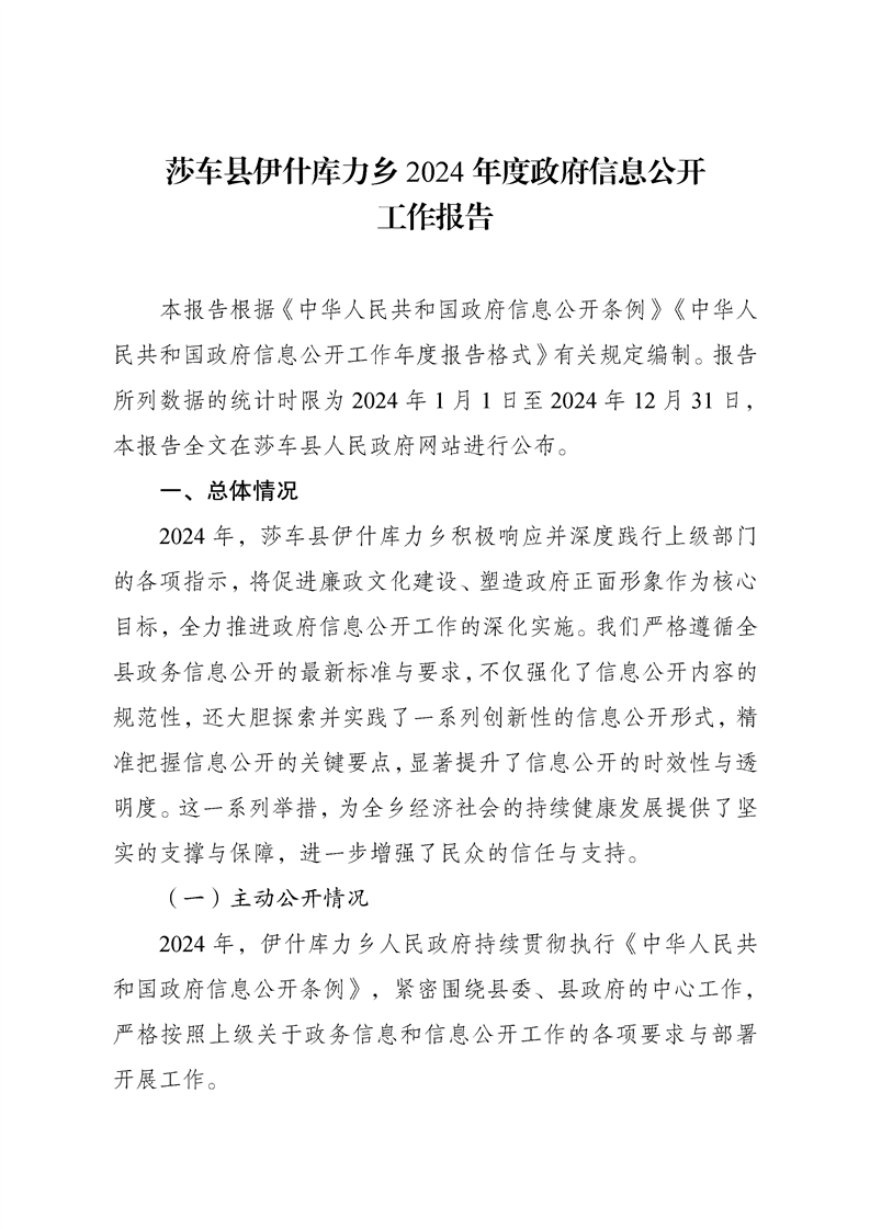 莎车县伊什库力乡2024年度政府信息公开工作报告