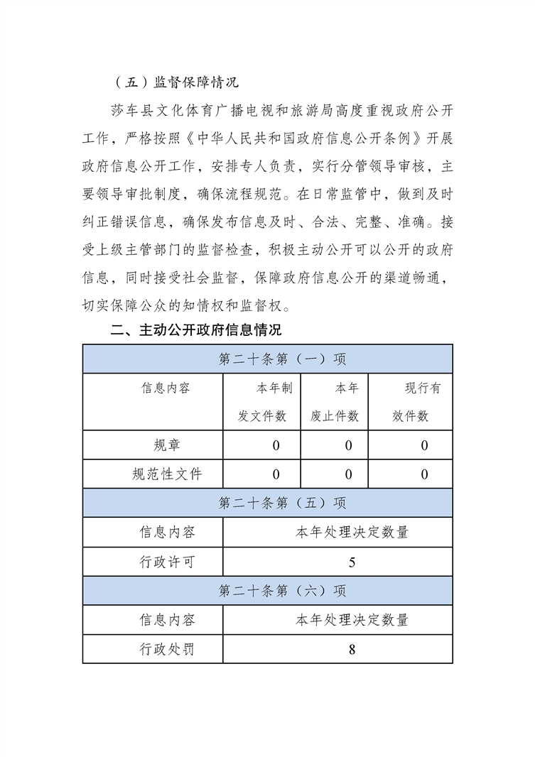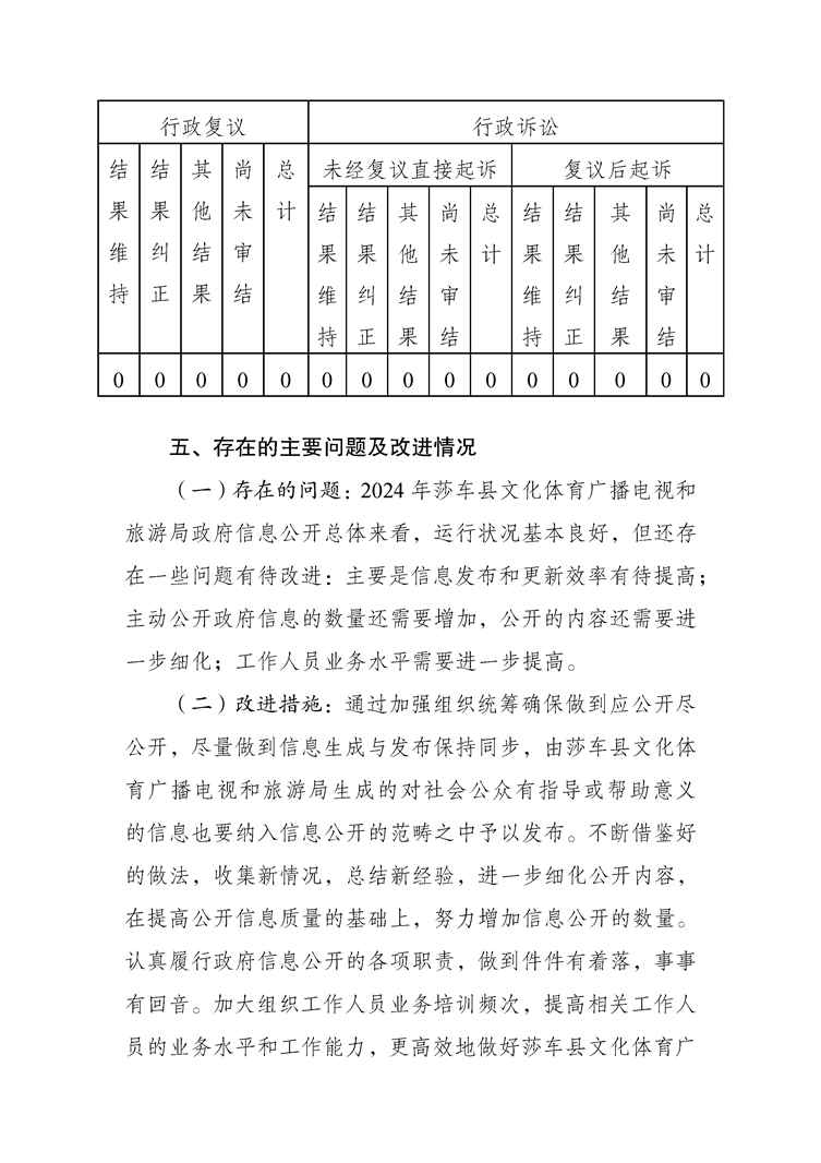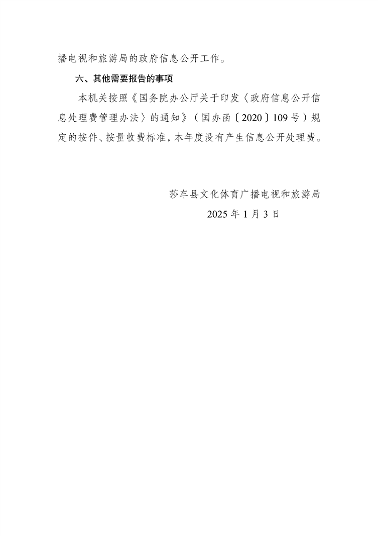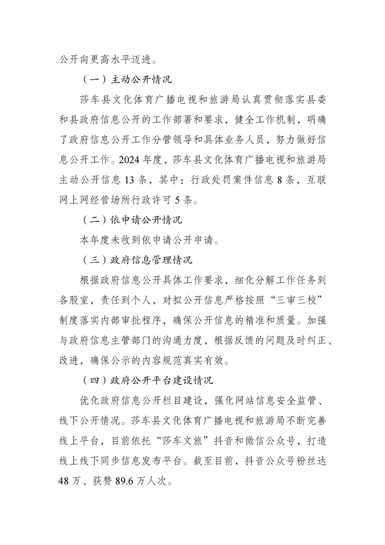 莎车县文化体育广播电视和旅游局2024年度政府信息公开工作报告