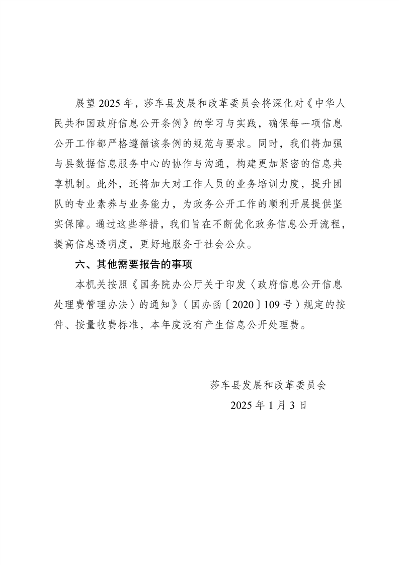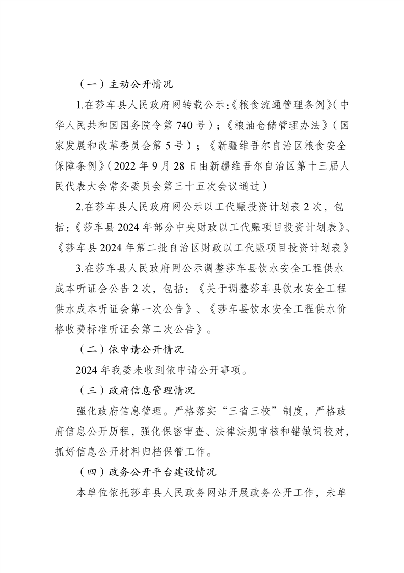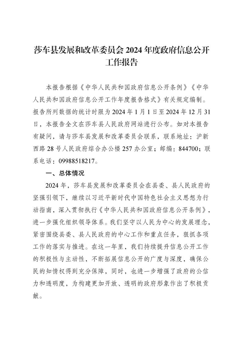 莎车县发展和改革委员会2024年度政府信息公开工作报告