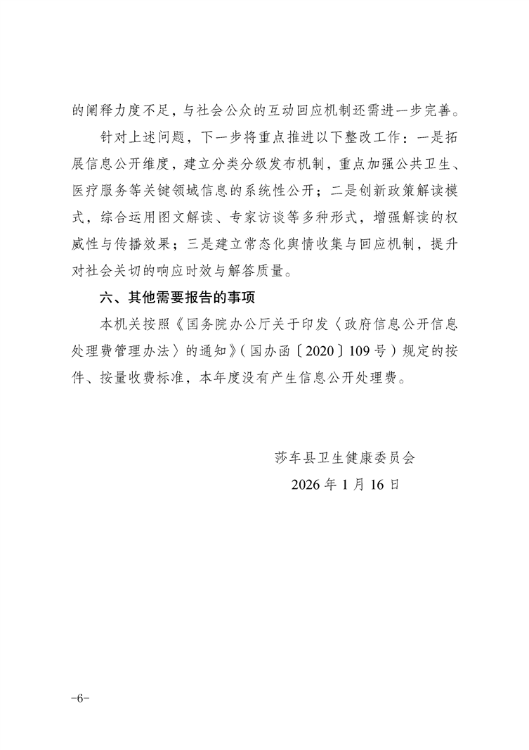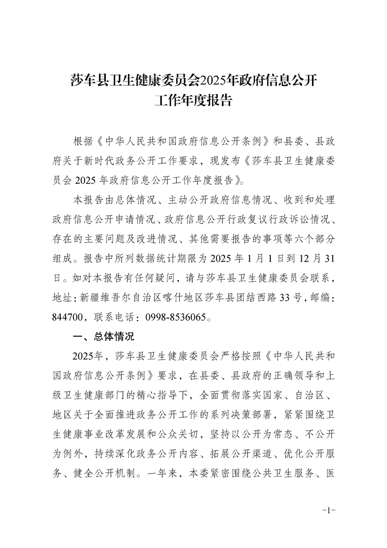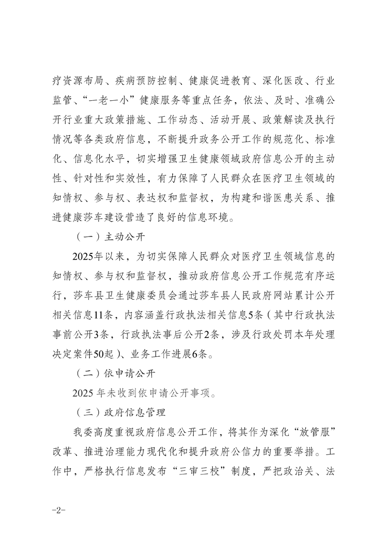 莎车县卫生健康委员会2025年政府信息公开工作年度报告