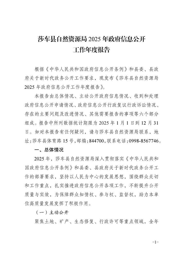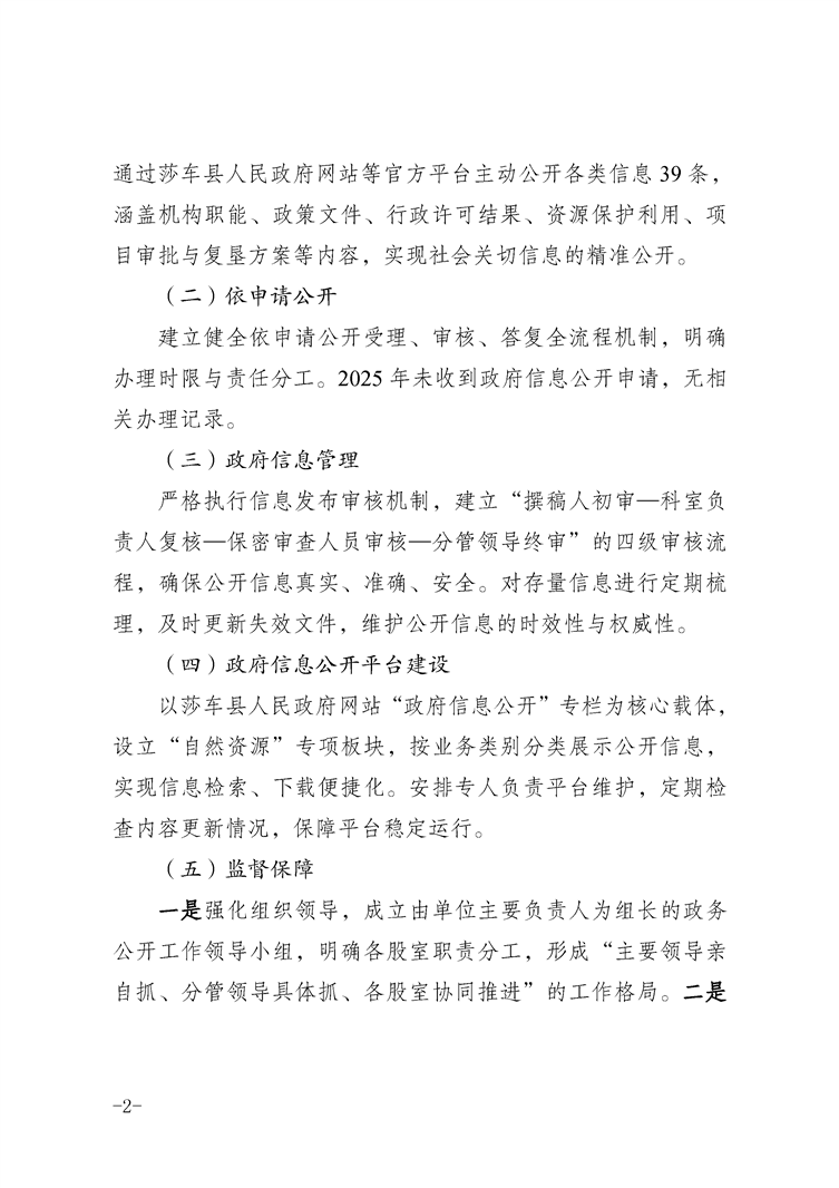 莎车县自然资源局2025年政府信息公开工作年度报告