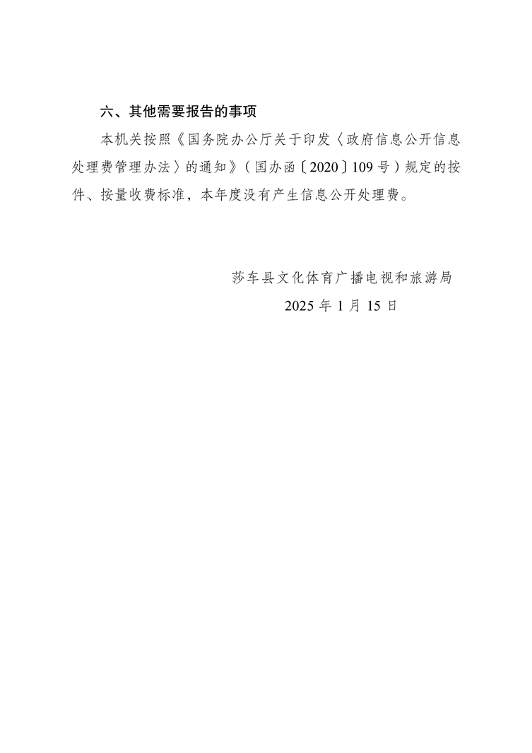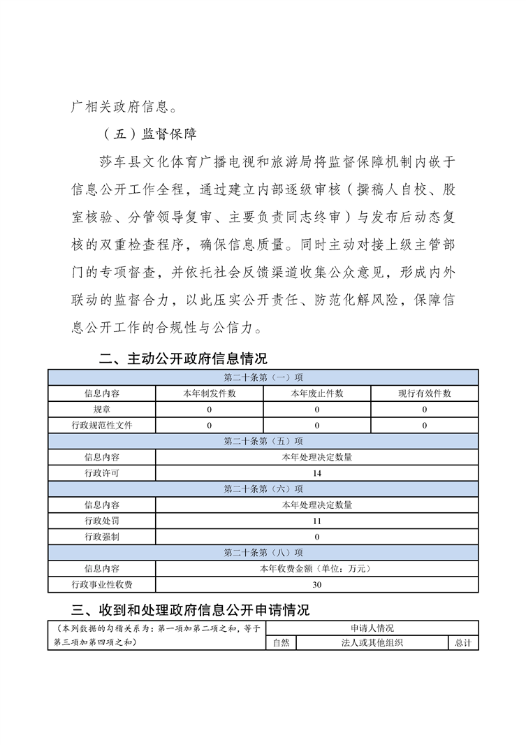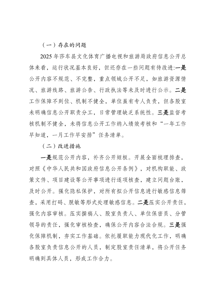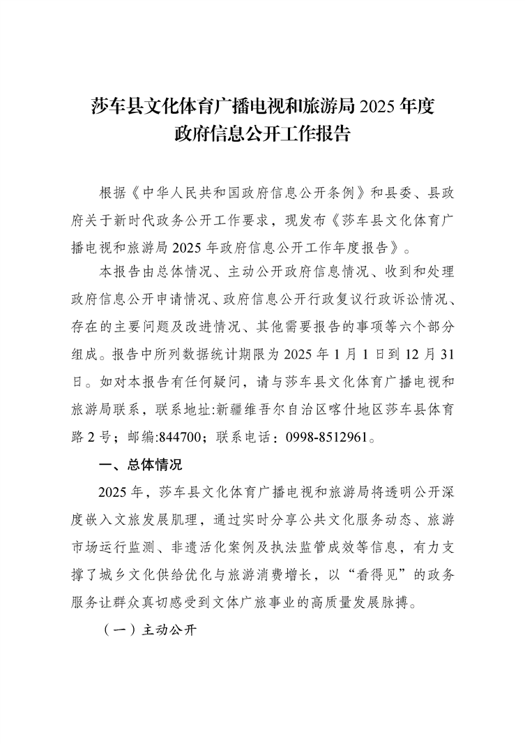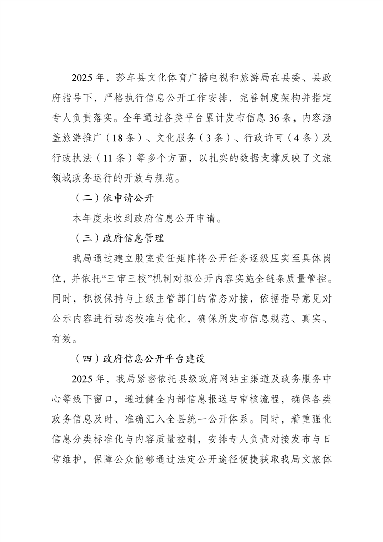 莎车县文化体育广播电视和旅游局2025年政府信息公开工作年度报告