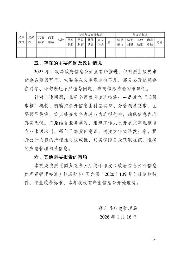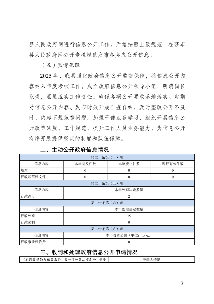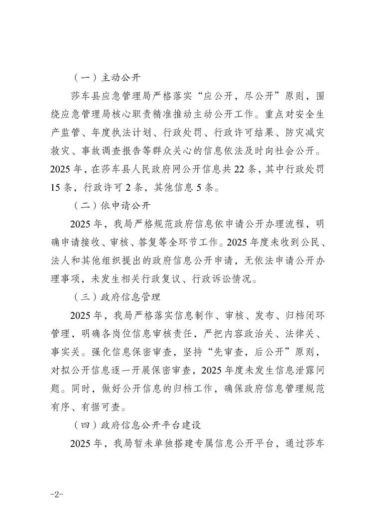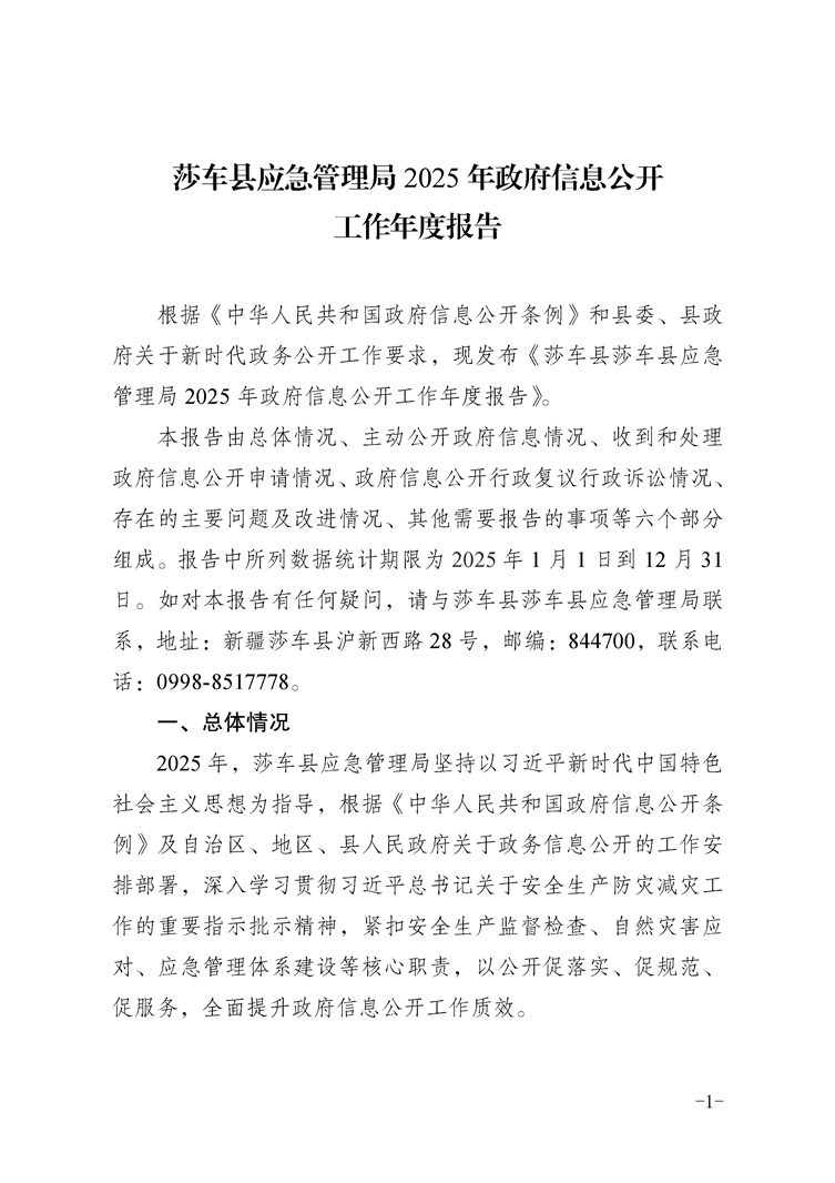 莎车县应急管理局2025年政府信息公开工作年度报告