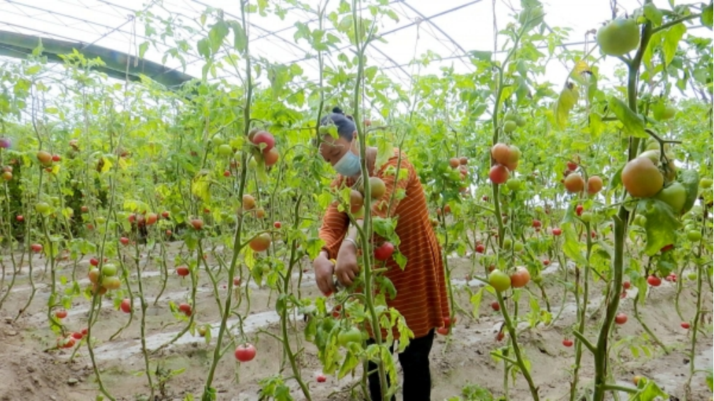 入春以来,莎车县白什坎特镇托万巴格艾日克村村民布萨拉·图尔荪就忙着在自家温室大棚里打理西红柿。布萨拉·图尔荪在村里种植温室大棚蔬菜已有两个年头了,一茬又一茬的各类蔬菜让布萨拉·图尔荪家的钱袋子慢慢鼓了起来,看着长势喜人的西红柿,她和村干部一起算着收入,满脸喜悦。“大棚里十月份种的西红柿苗子,二月初上市了,现在每三天就可以卖一次了,西红柿长势好,果子也好。每一个大棚每一茬种可以收获8000千克西红柿,我一年每一个大棚可以收入15000元到18000元。”