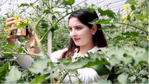 近日,莎车县各地温室大棚的水果陆续成熟上市,吸引周边县市和当地游客前来踏青、游玩、采摘尝鲜,体验田园风光。走进伊什库力乡克什拉克村的蔬菜基地温室大棚内“景色宜人”,呈现出一派忙碌景象。圣女果赢得游客一片点赞声,采摘、拍照、晒朋友圈,游客们也忙的不亦乐乎。
