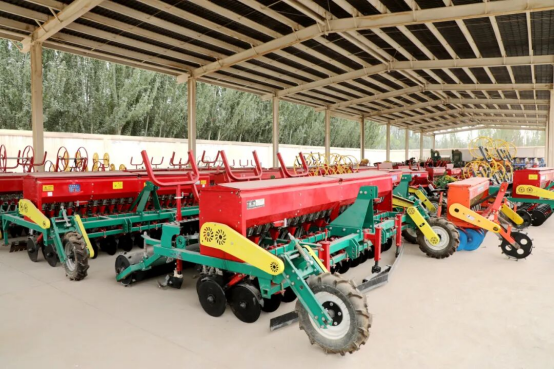 同日,在莎车县拍克其乡农机管理服务站,各类农机具整齐停放,技术员玉孙江·博苏戈与维修师傅正在对农机进行全方位“体检”。为更好地服务群众,不误农时,打好“秋收战”,该农机站还引进新设备新技术。