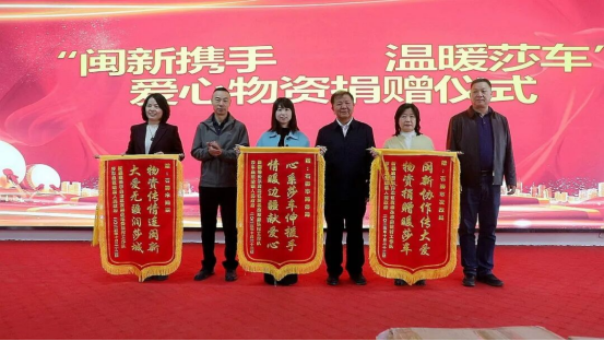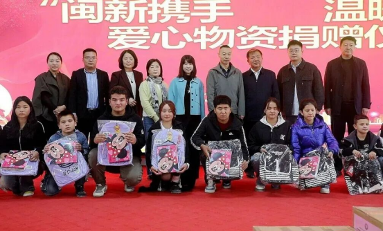 随后,石狮市代表现场向村民和学生发放棉服、书包等爱心物品。受赠方代表回赠锦旗,表达对石狮市无私援助的诚挚谢意。
