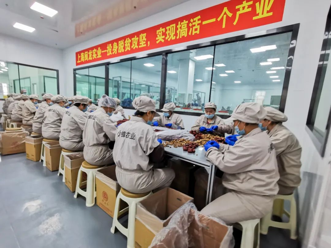 在当年同赴新疆的考察团里,闽龙实业是首个援疆落户的企业。作为一名来自上海的民营企业家、两个孩子的母亲,她几乎每个月都要飞新疆,清晨上飞机,下午经停乌鲁木齐再转喀什下,还要在戈壁滩上乘车颠簸近5个小时,晚上才能到达位于泽普县的工厂。如果遇到沙尘暴极端天气,车子走走停停,有时要凌晨才能到达目的地。令她欣慰的是儿子郑金龙的加入。母子俩始终奋战在生产第一线,亲力亲为,攻克一个又一个难关,创立了新疆闽龙达干果产业有限公司,建成了2万平方米的现代化加工厂。先后打造国家级红枣种植示范基地1200亩,吸纳当地员工200多人。每年签约种植农户2500余户,年加工能力达5000吨以上,产品销往全国5000多家超市卖场和电商平台。工厂所在地喀什泽普县2018年就实现了脱贫摘帽,产业扶贫实实在在帮助泽普县人民实现了脱贫。