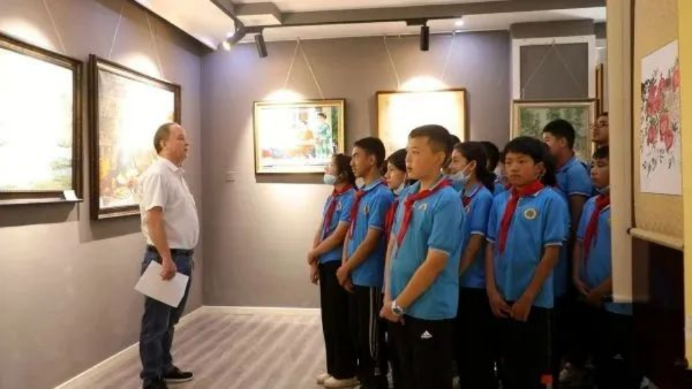 第六小学学生阿丽米热·依力哈木说:“通过参观今天的展览,我感受到了绘画艺术作品的魅力和内涵。其中我最喜欢的一幅是各族群众坐在一起唱歌、聊天的画面。”