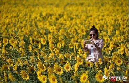 向日葵朵朵花盘果实饱满引游人驻足拍照。图 /巴州访惠聚办公室