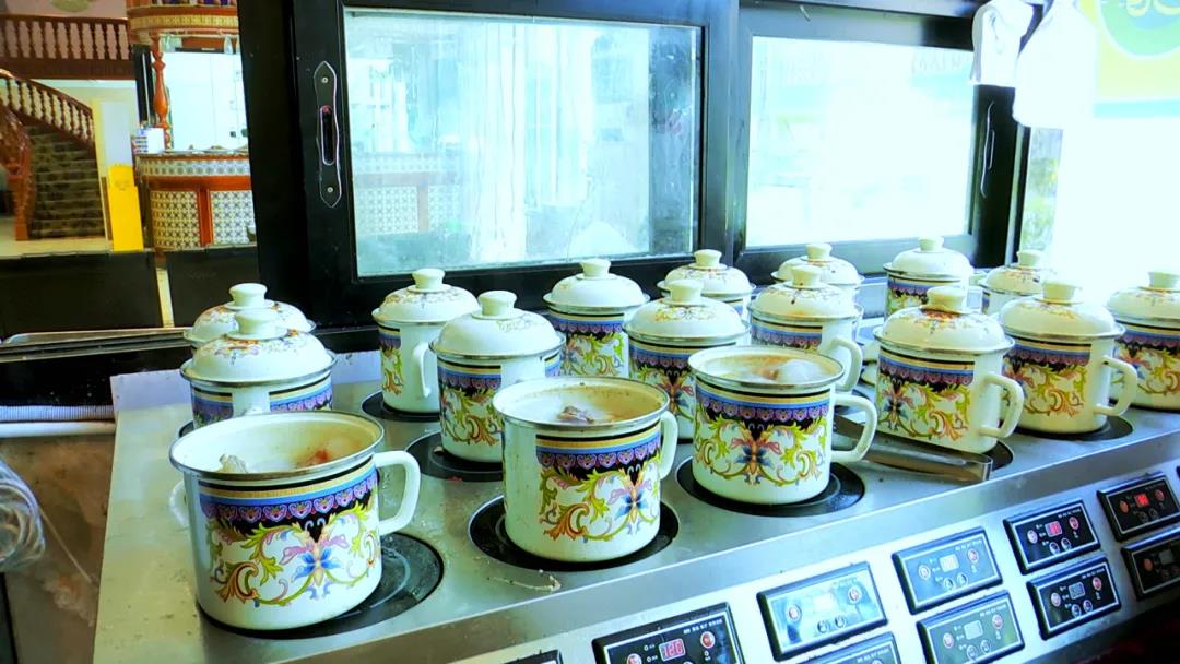 走进莎车县喀赞其街,耳边就传来了“叮叮当当”的敲击声。街边的铁锅店、铜锅店里的匠人正忙活着。喀赞其街入口处,有一家占地700多平方米、名为“喀德尔哈孜烤包子特色美食”的餐厅。餐厅的主人,32岁的阿布都卡哈尔·艾尼瓦尔自小在莎车老街长大,大学毕业后子承父业,他是喀赞其街上最有名的烤包子店第四代传人。