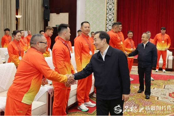 陈小江艾尔肯·吐尼亚孜会见第十五届全国运动会新疆体育代表团获奖运动员教练员代表