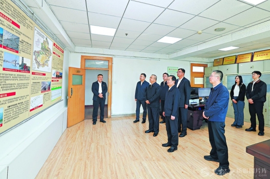 4月7日,自治区党委书记陈小江、自治区主席艾尔肯·吐尼亚孜赴自治区自然资源厅、自治区地质局调研并座谈。这是陈小江、艾尔肯·吐尼亚孜在自治区自然资源厅,了解地质勘查等重点工作进展。□石榴云/新疆日报记者崔志坚摄