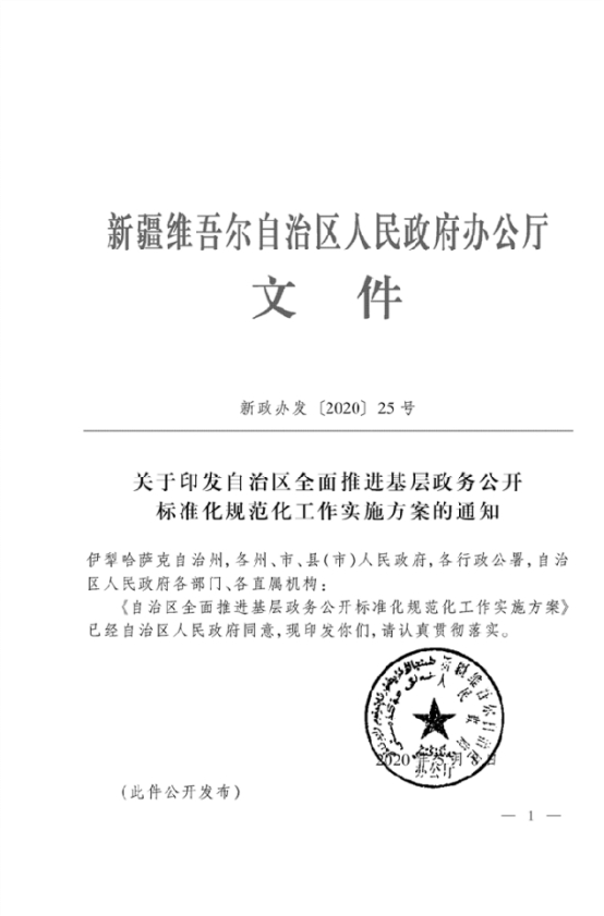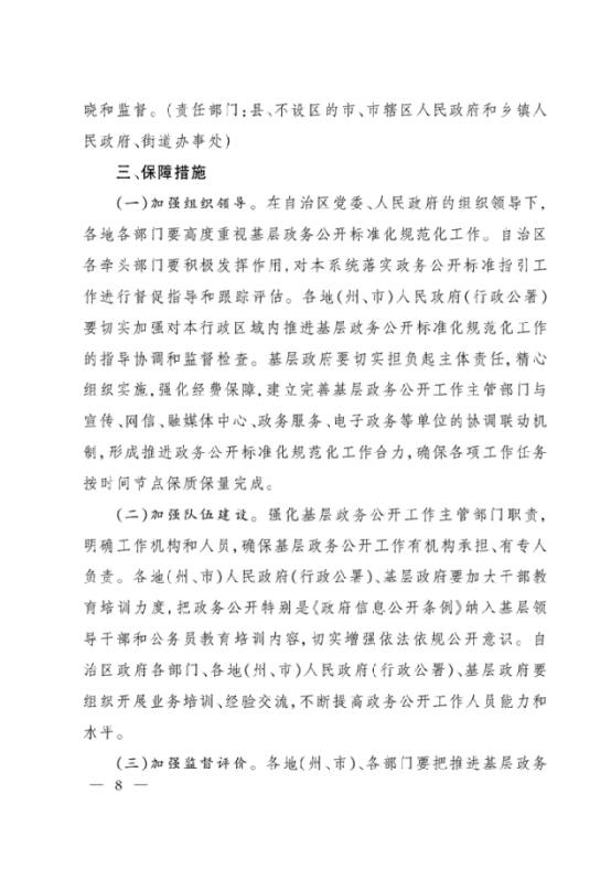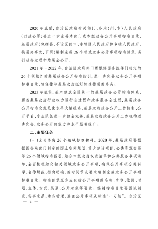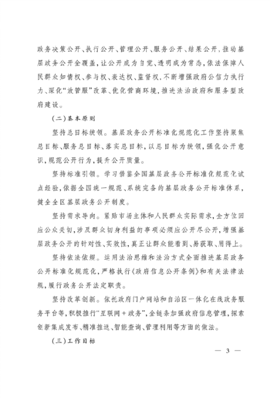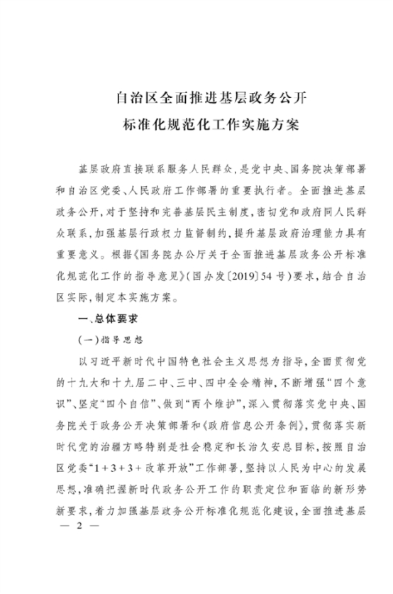 关于印发自治区全面推进基层政务公开标准化规范化工作实施方案的通知