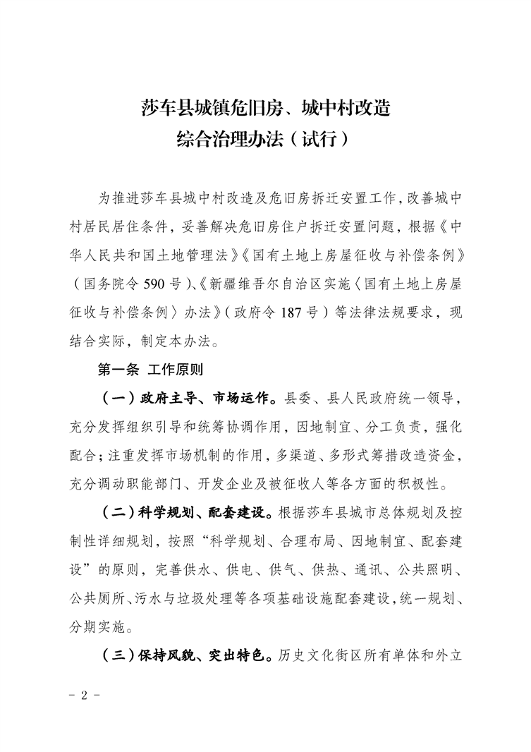 莎车县城镇危旧房、城中村改造综合治理办法(试行)