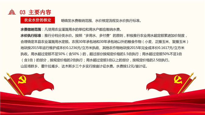 (一)农业水价的核定。明确发水费缴纳范围、水价核定流程及水价执行标准。