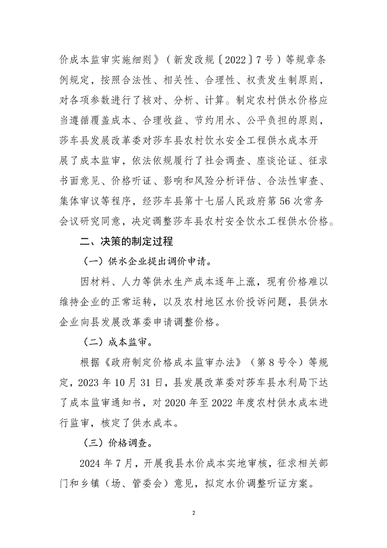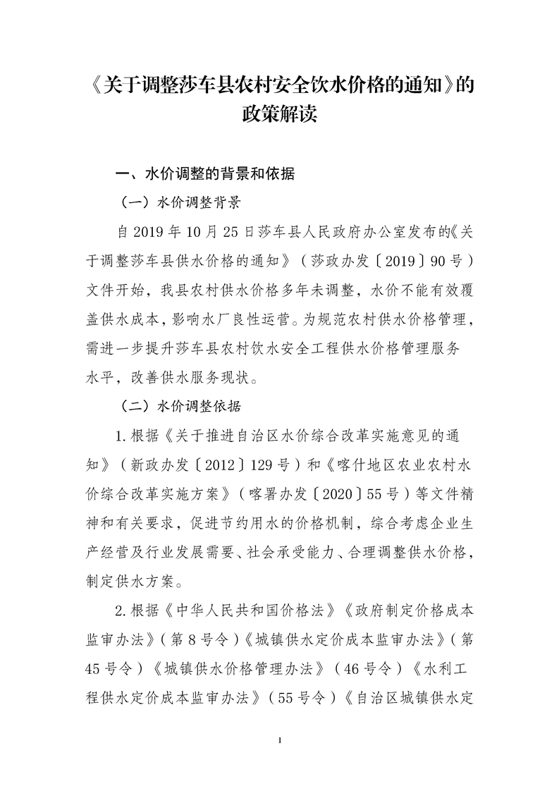 《关于调整莎车县农村安全饮水价格的通知)》的政策解读