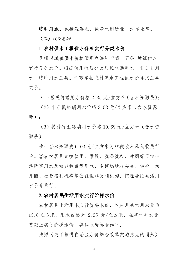 关于调整莎车县农村饮水安全工程供水价格的通知