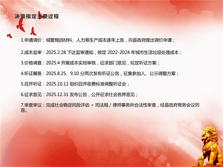 于2025年10月11日组织召开听证会,对莎车县城市生活垃圾处理费调整方案进行听证。