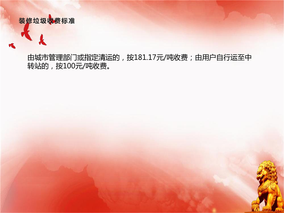 由城市管理部门或指定清运的,按181.17元/吨收费;由用户自行运至中转站的,按100元/吨收费。