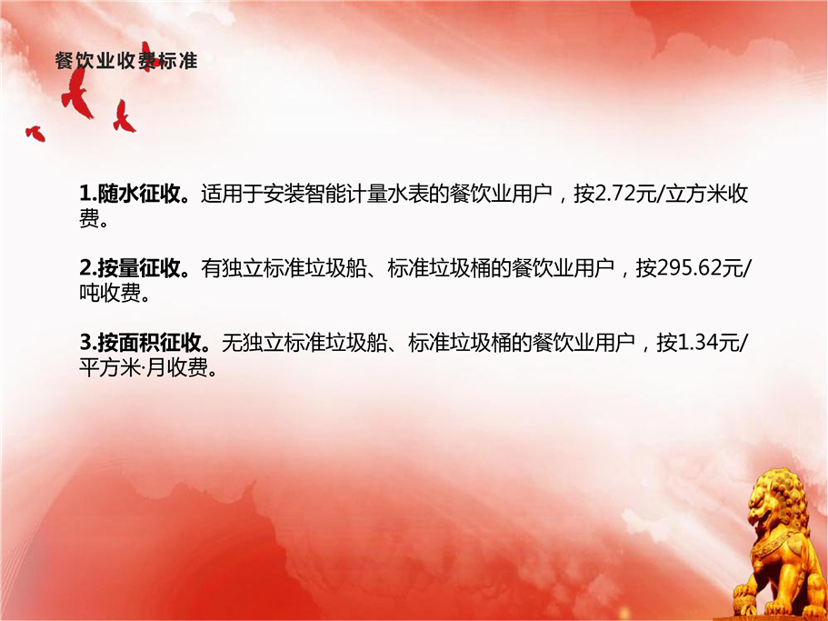 随水征收。适用于安装智能计量水表的餐饮业用户,按2.72元/立方米收费。