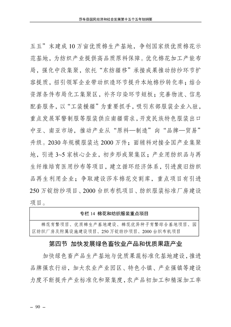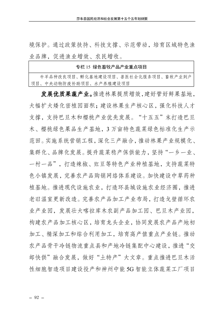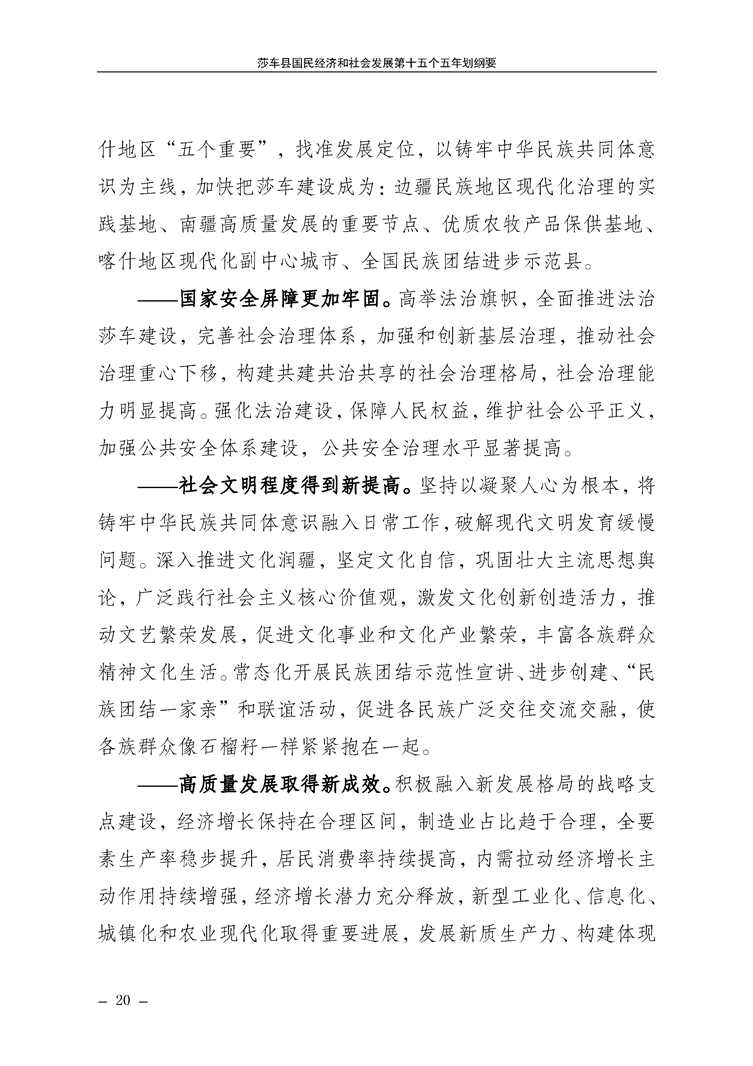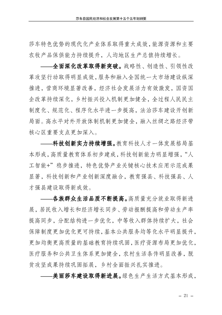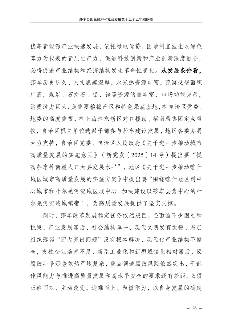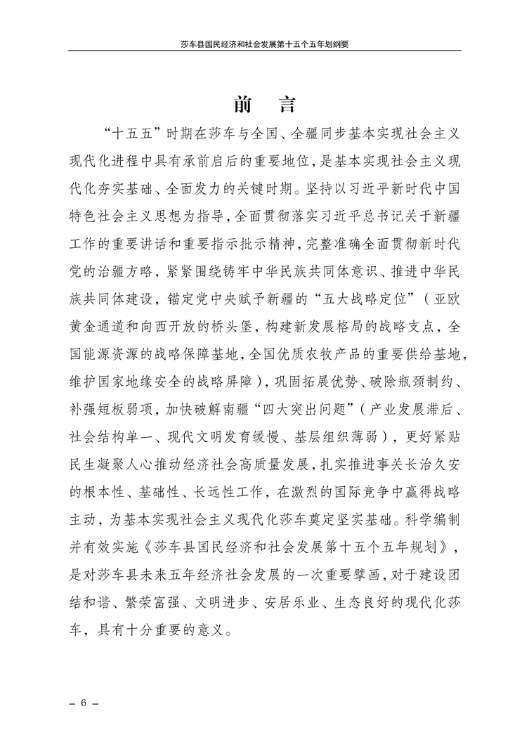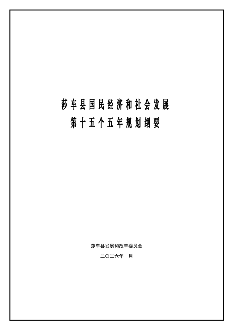 莎车县国民经济和社会发展第十五个五年规划纲要