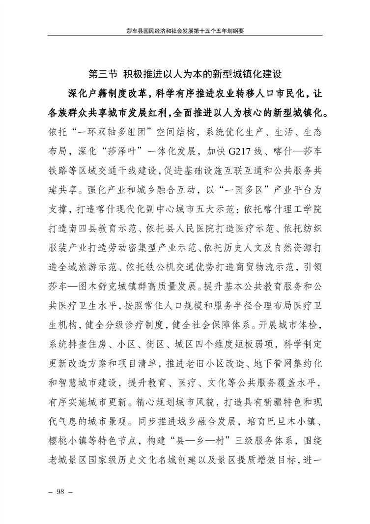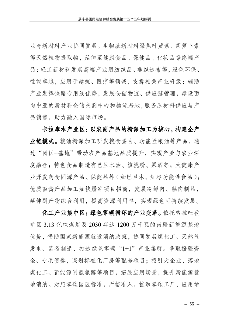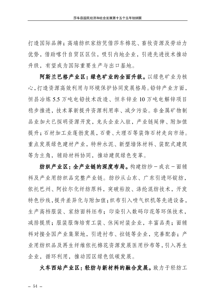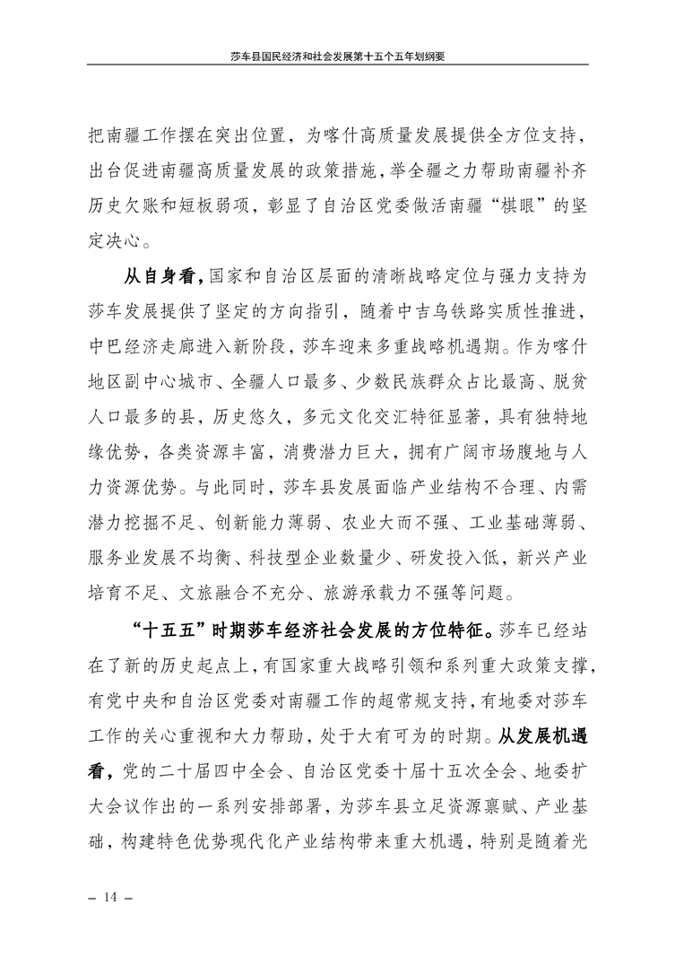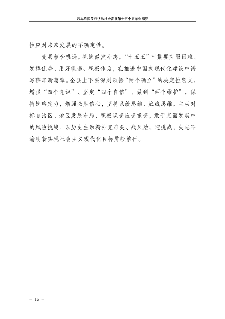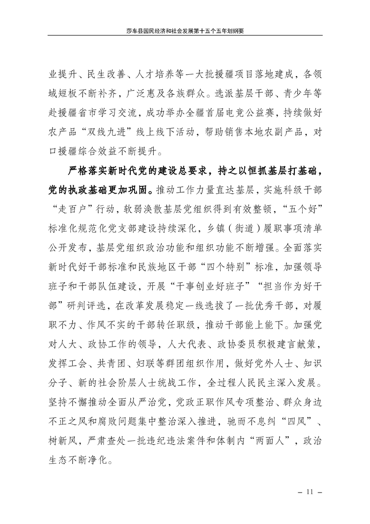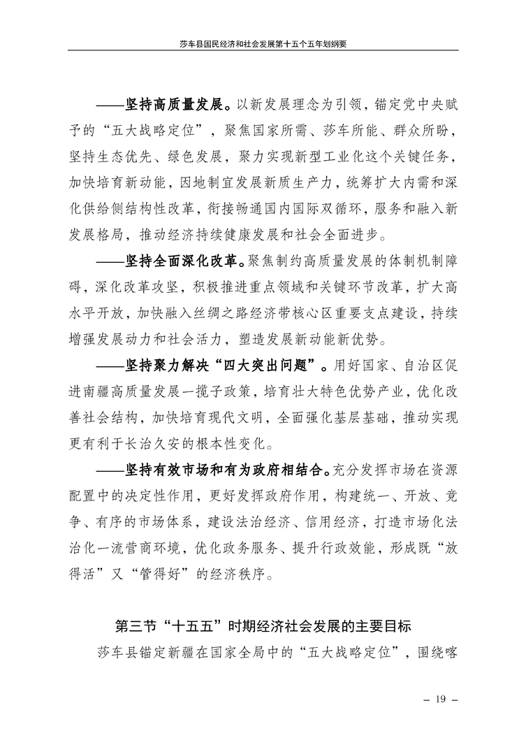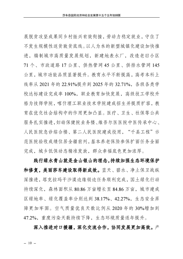 莎车县国民经济和社会发展第十五个五年规划纲要