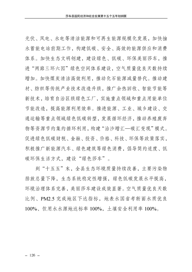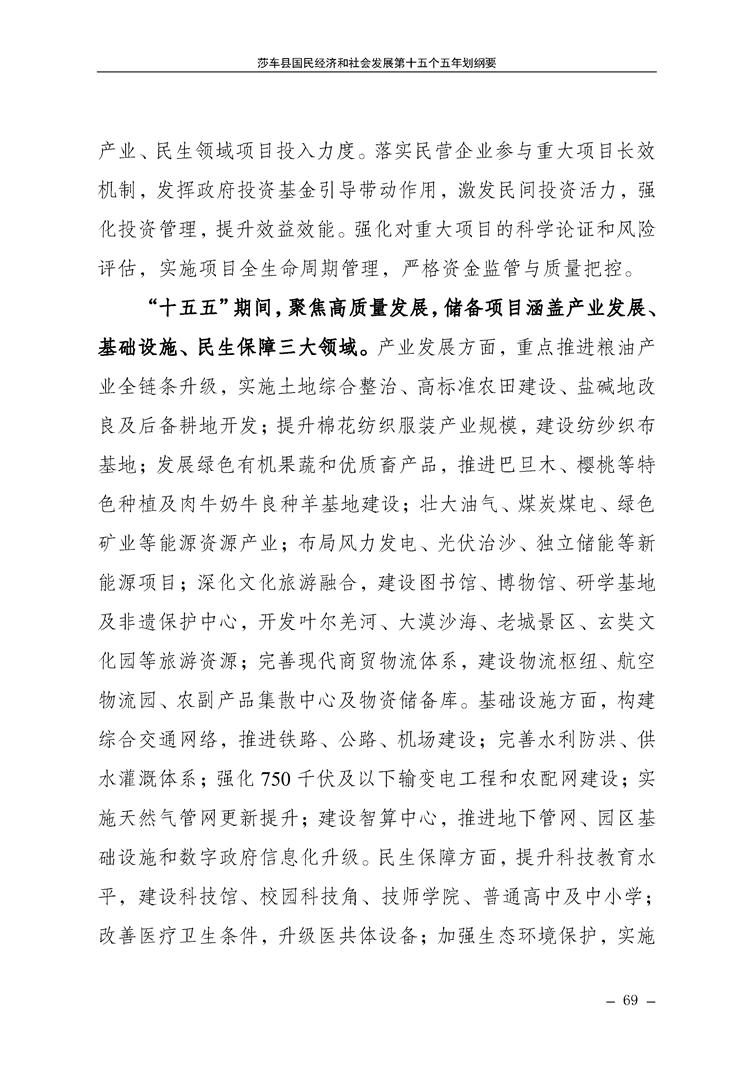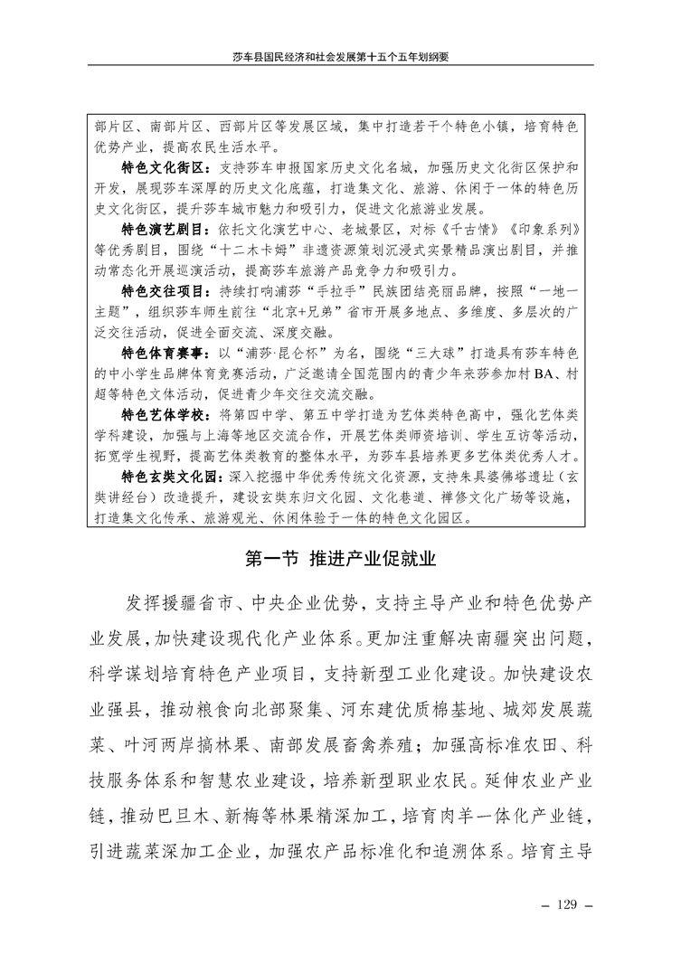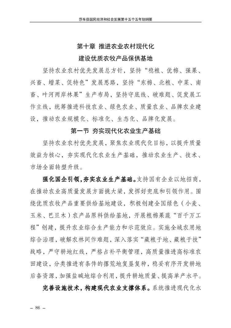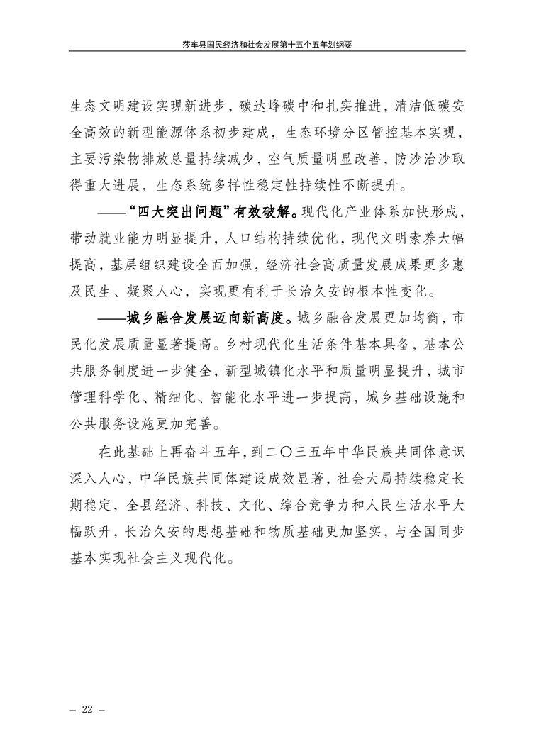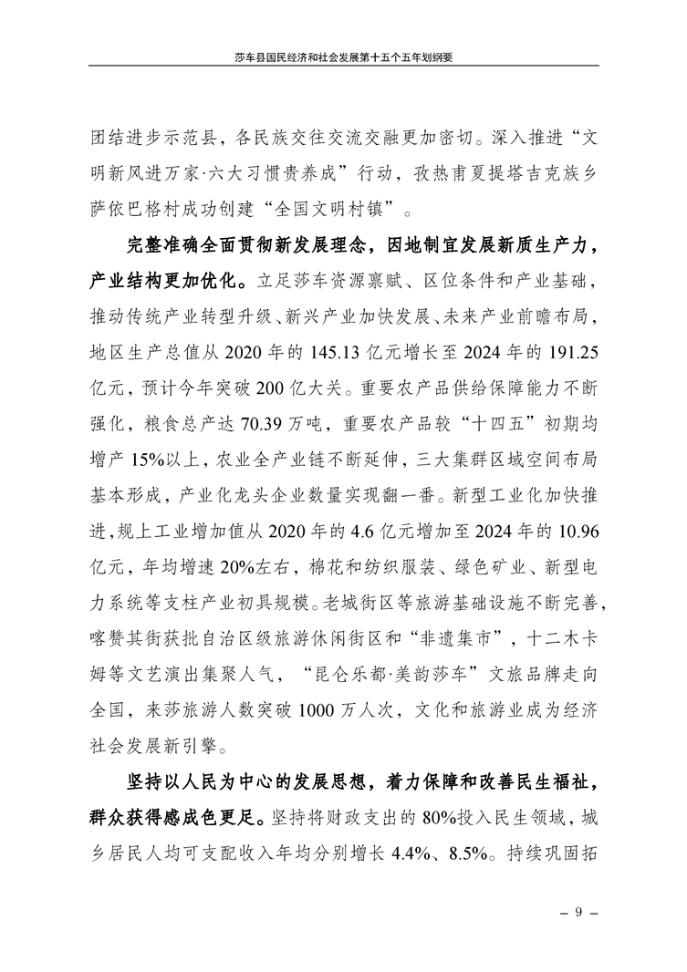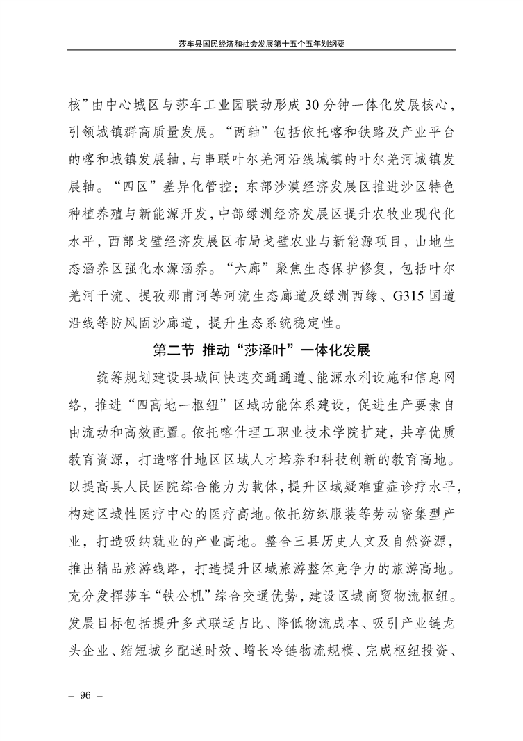 莎车县国民经济和社会发展第十五个五年规划纲要