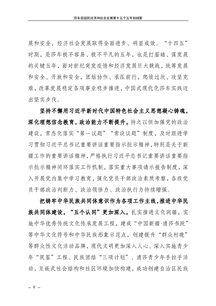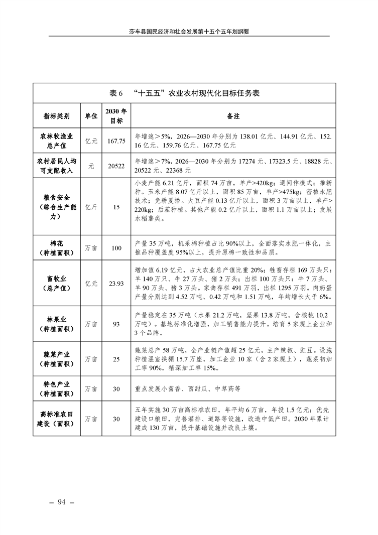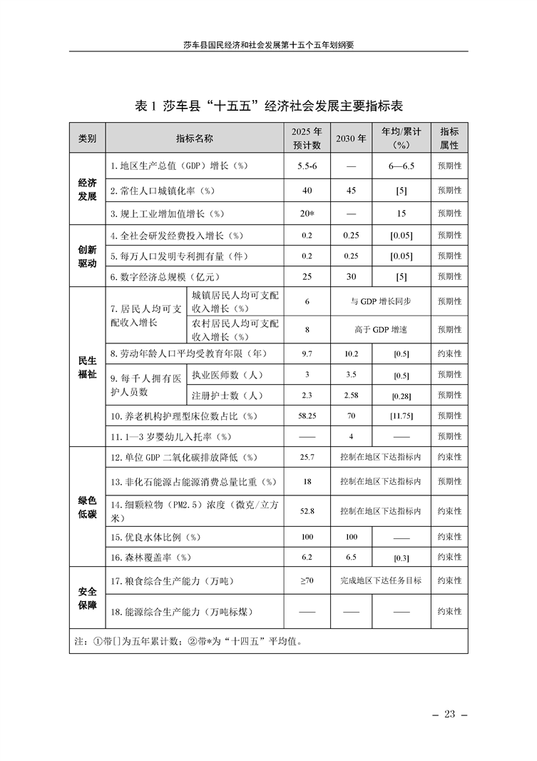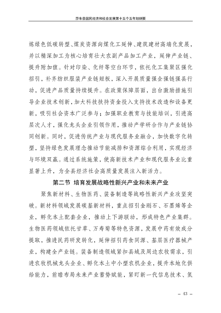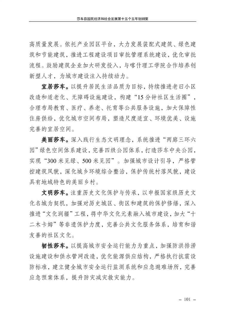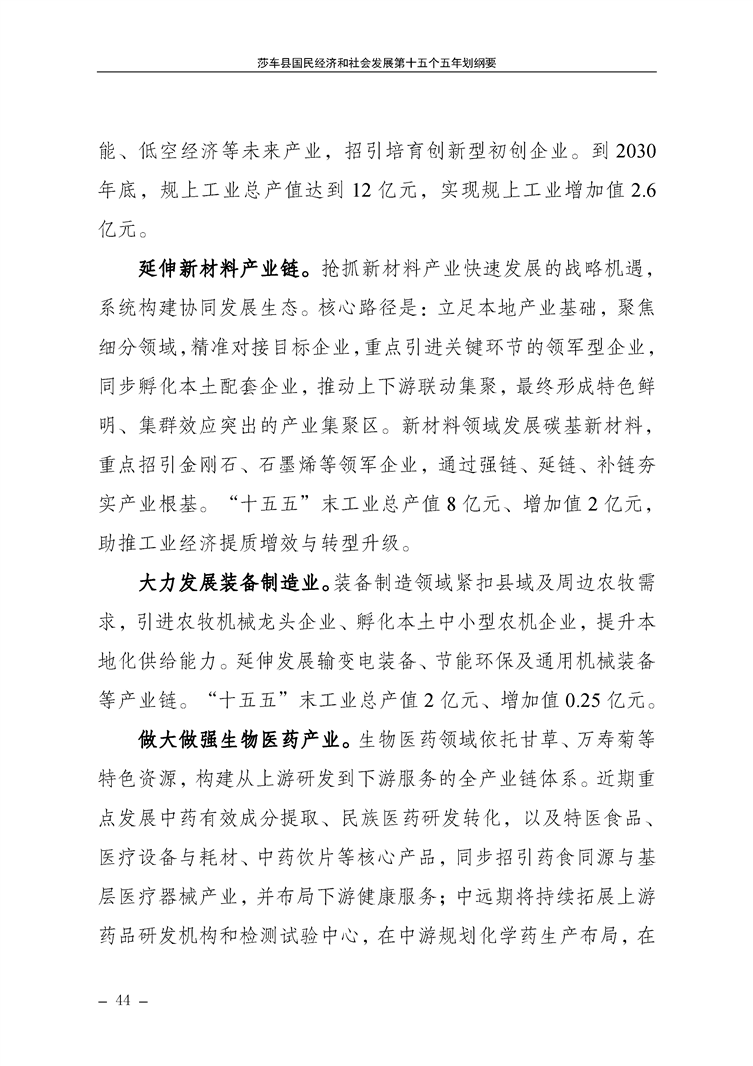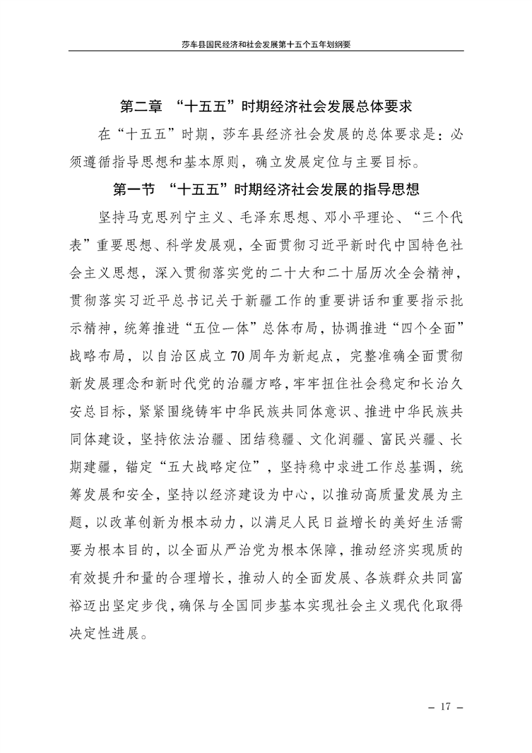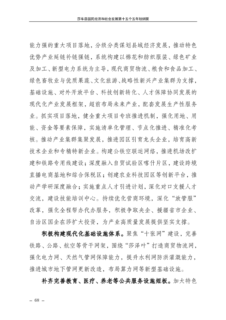 莎车县国民经济和社会发展第十五个五年规划纲要