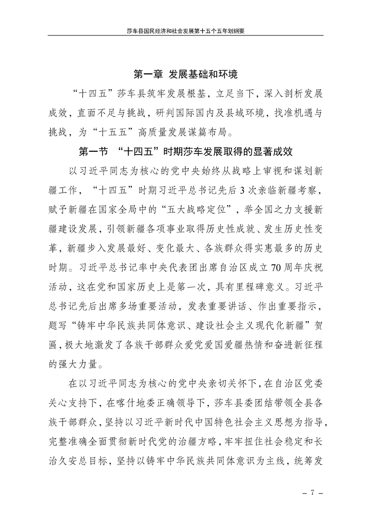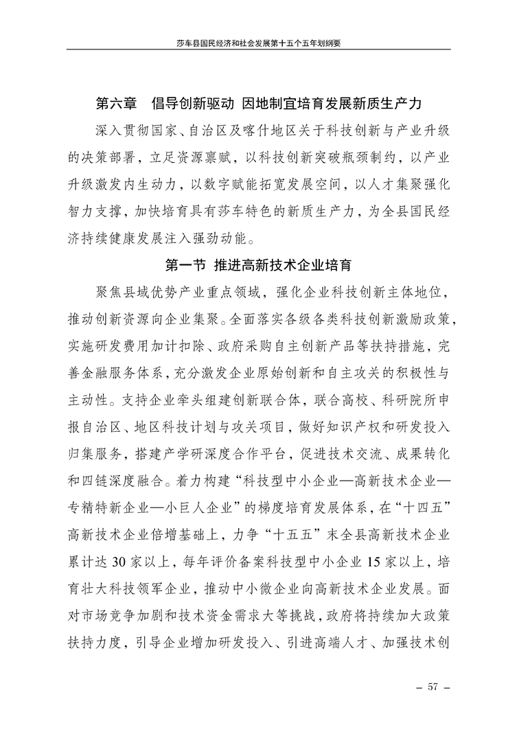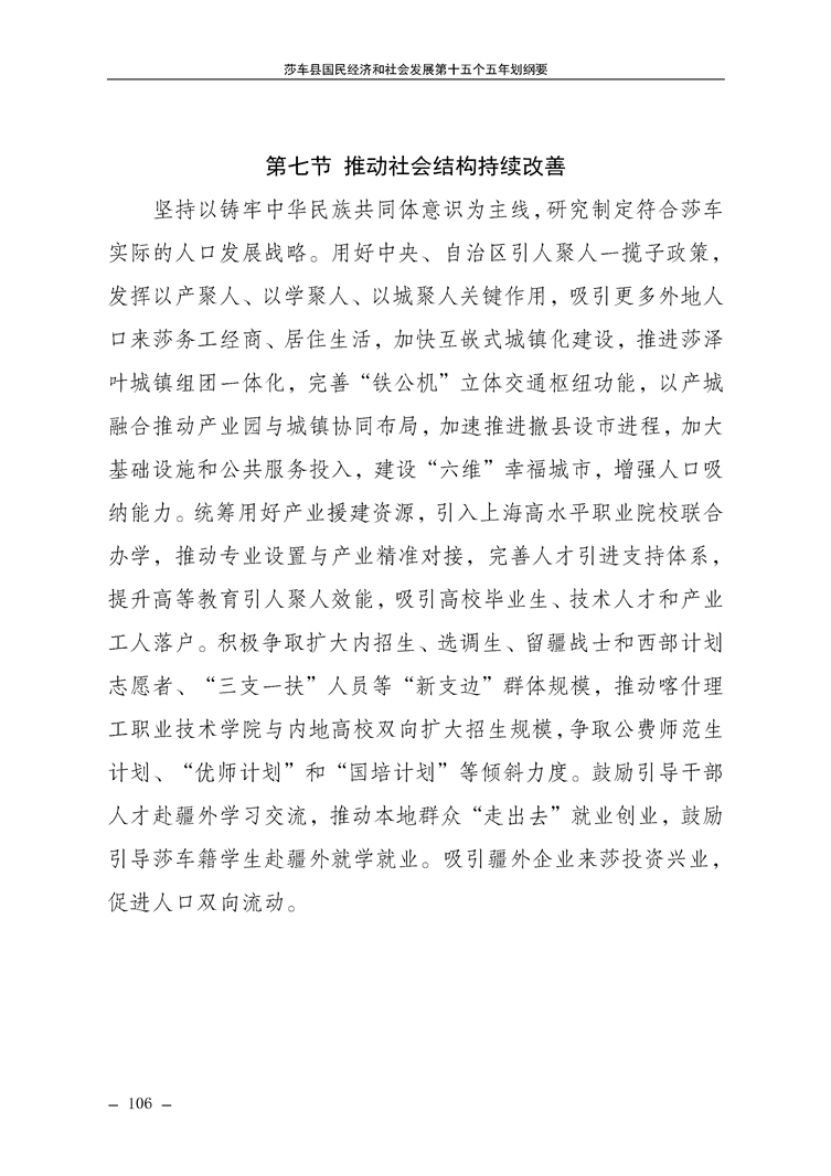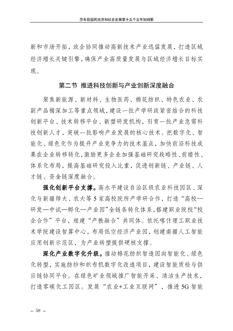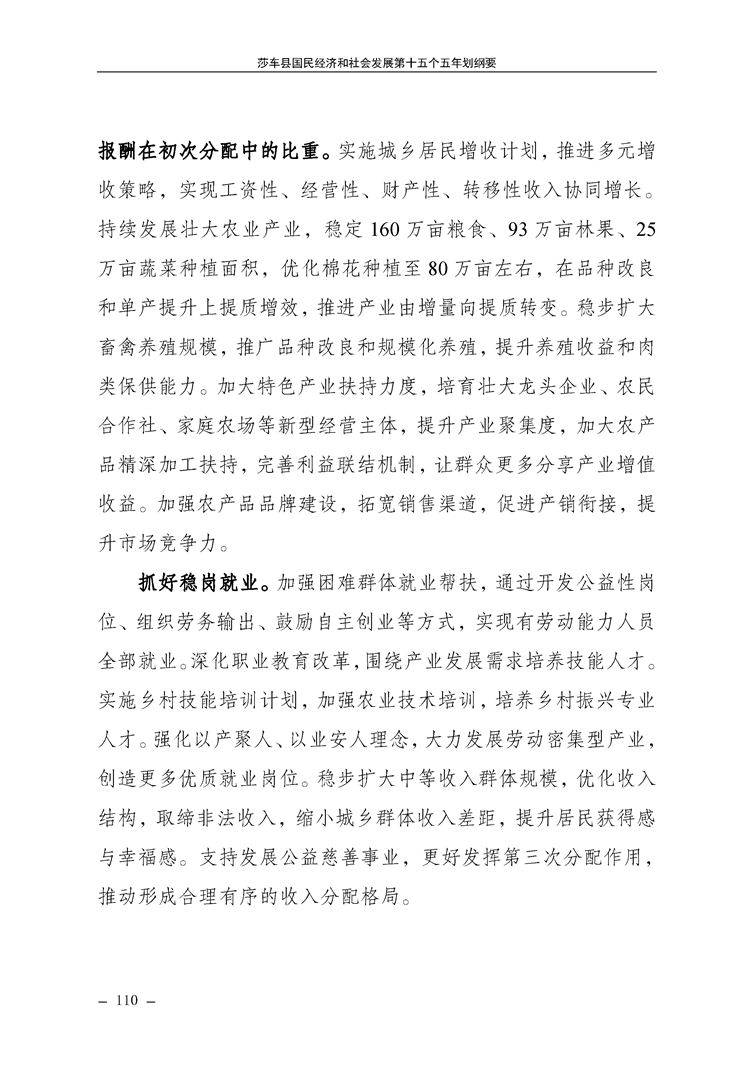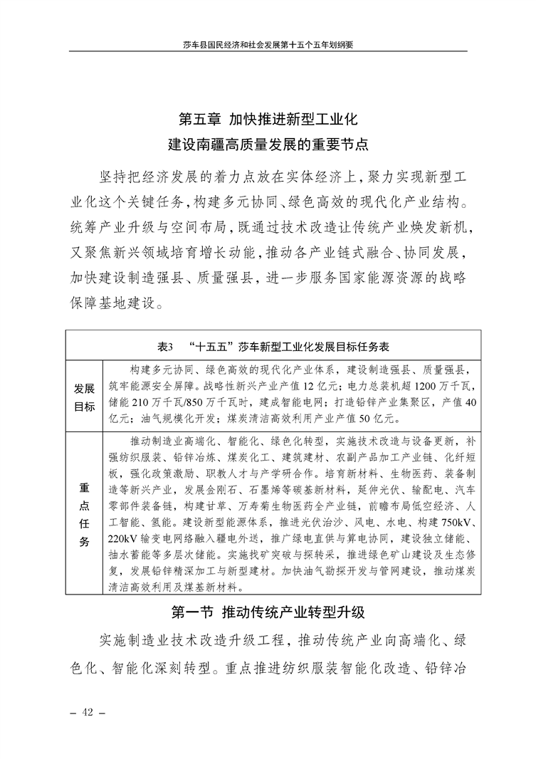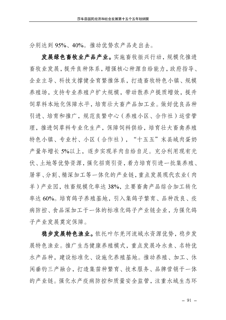 莎车县国民经济和社会发展第十五个五年规划纲要
