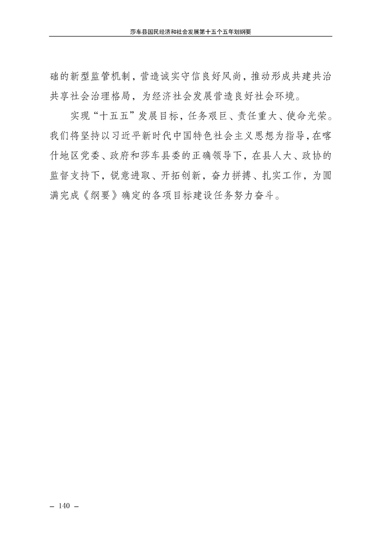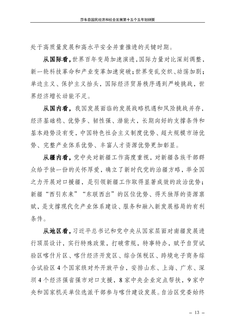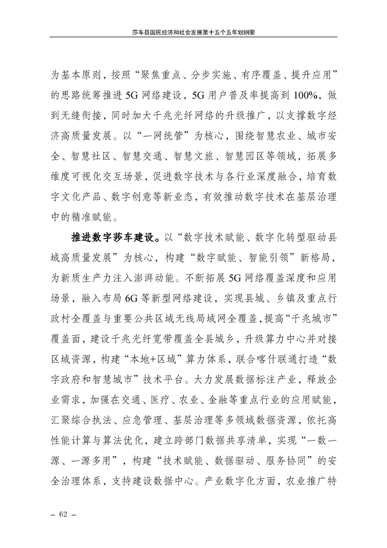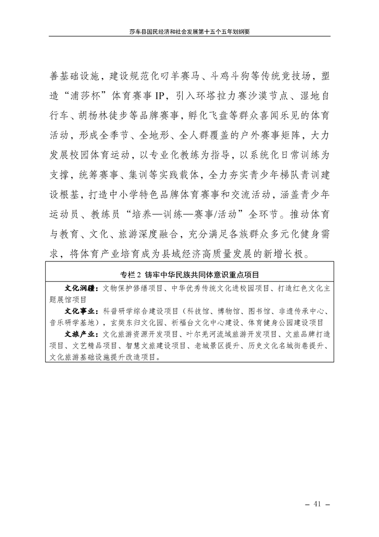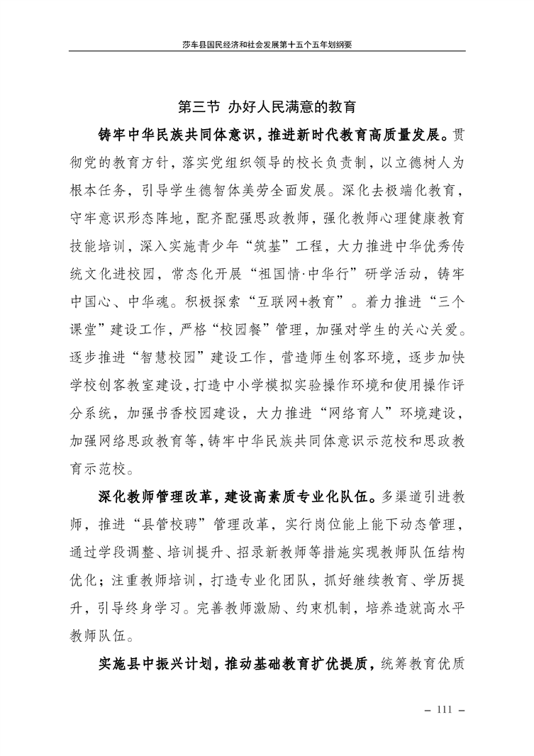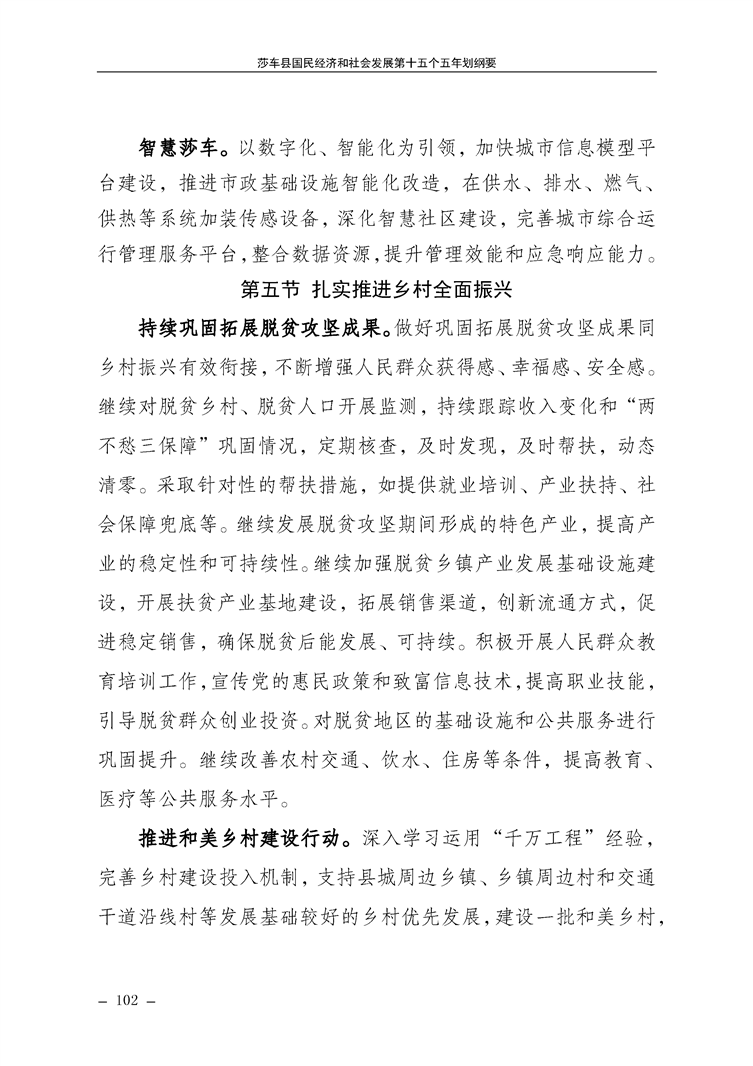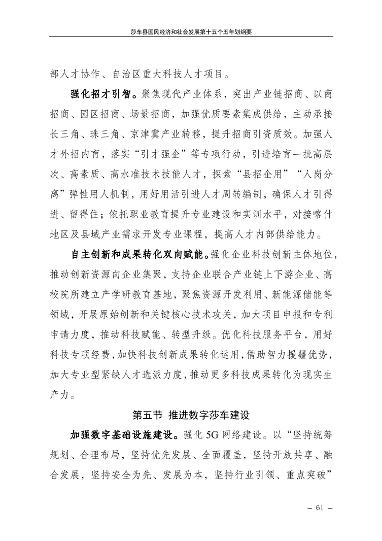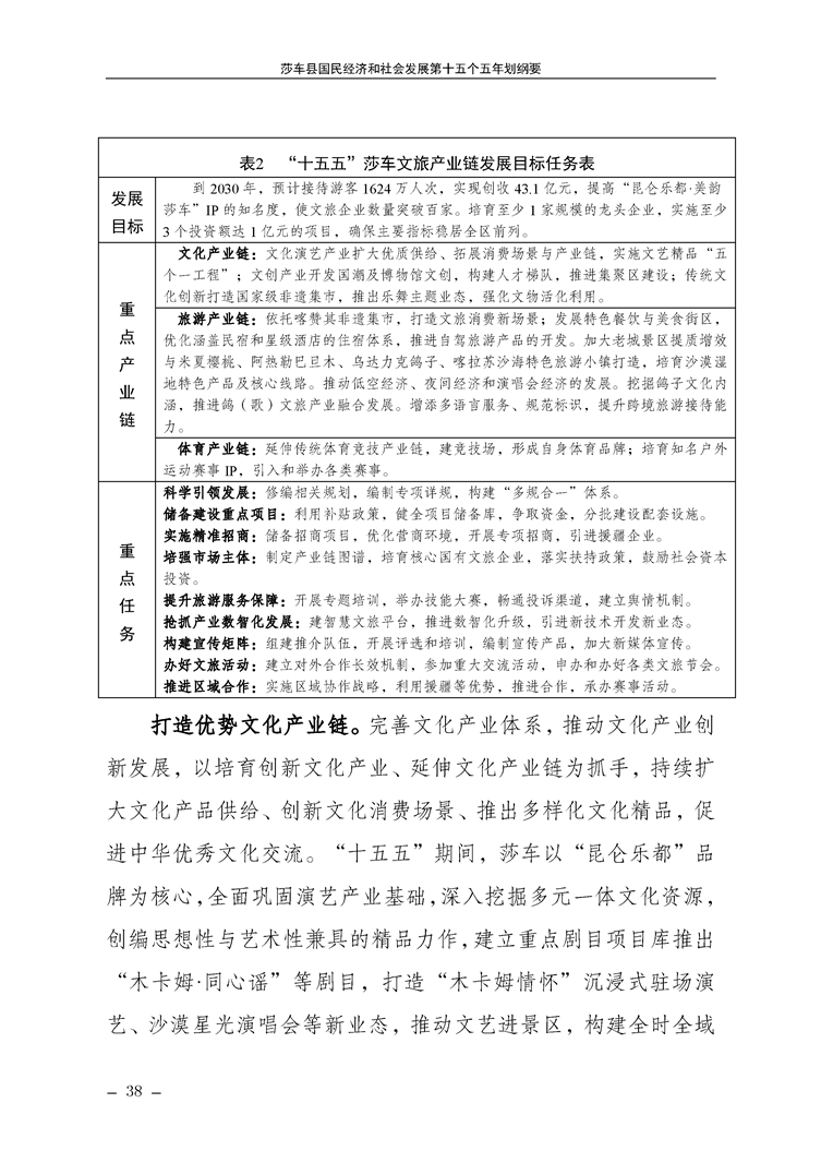 莎车县国民经济和社会发展第十五个五年规划纲要