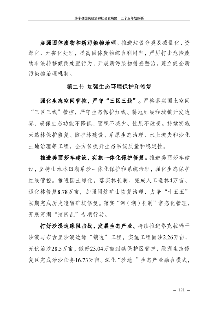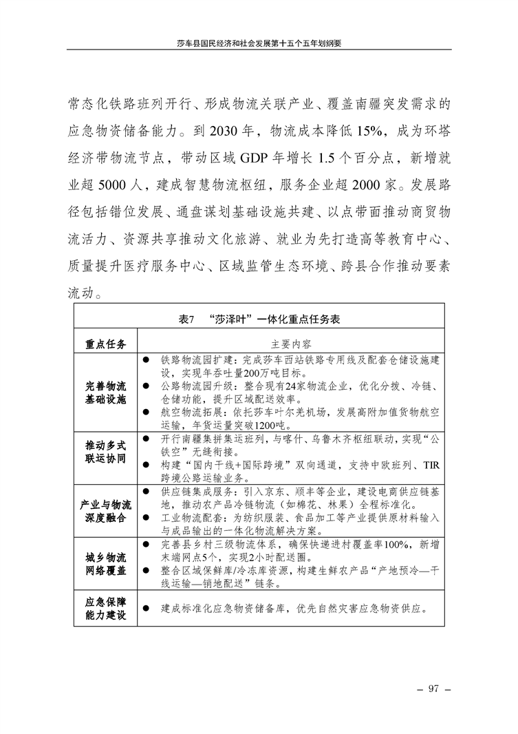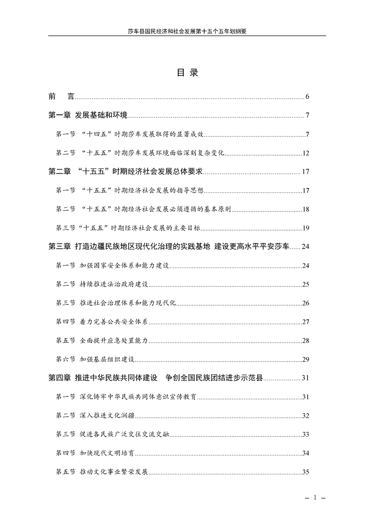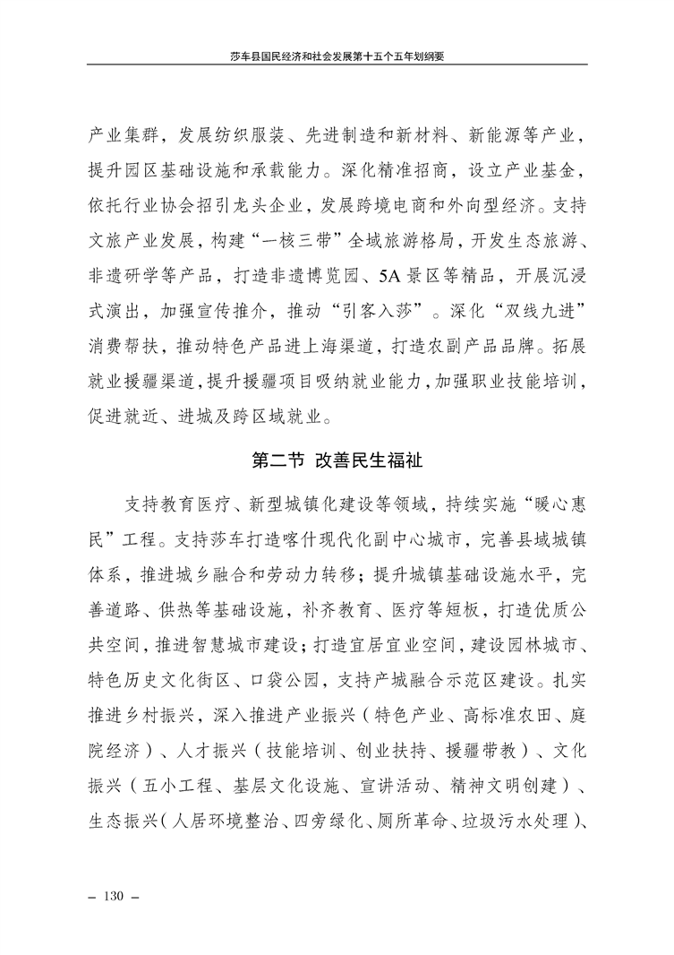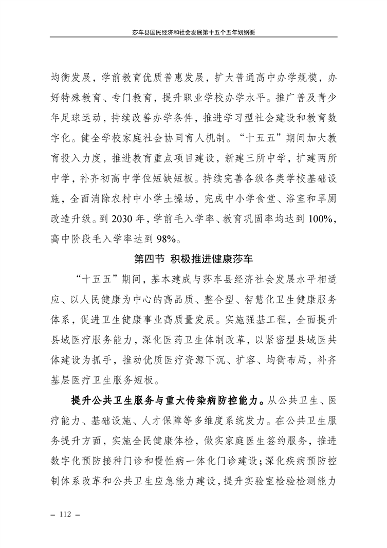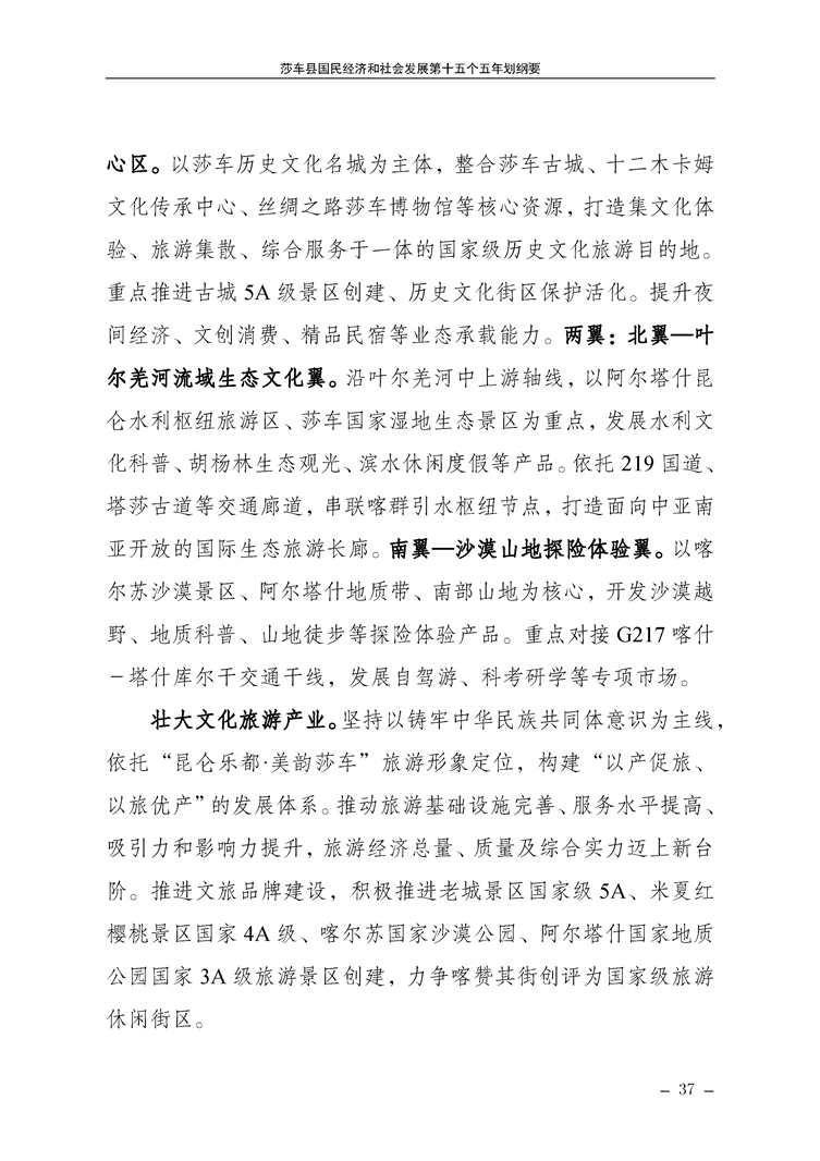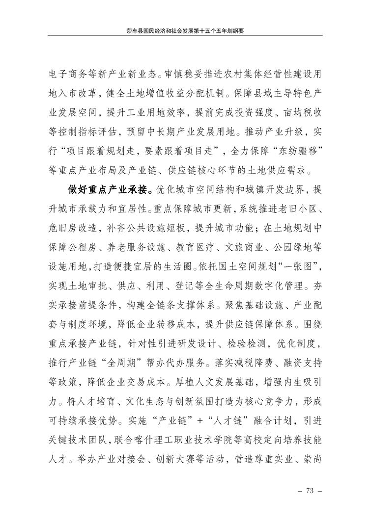 莎车县国民经济和社会发展第十五个五年规划纲要