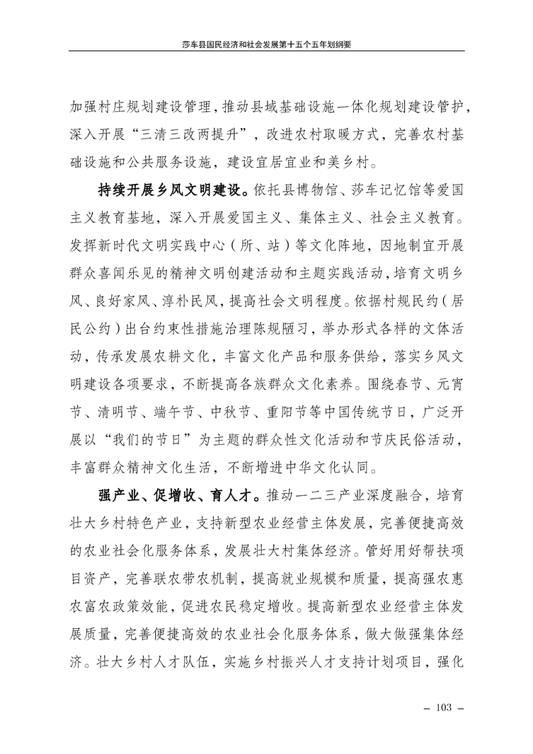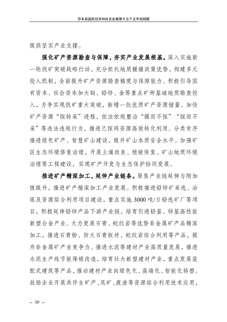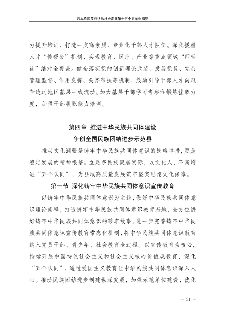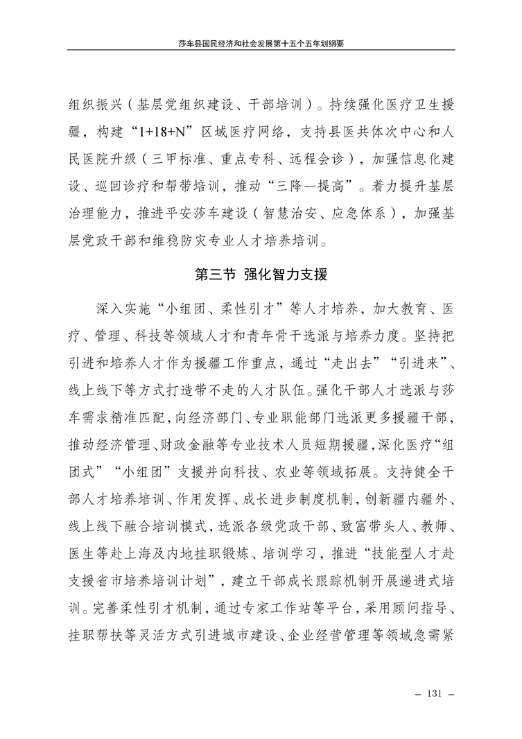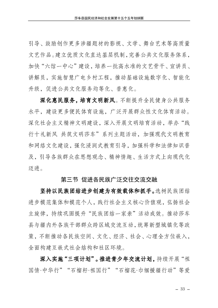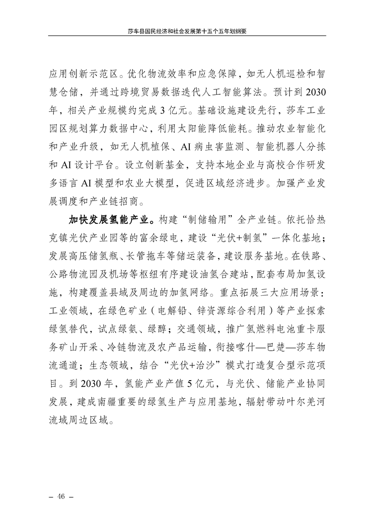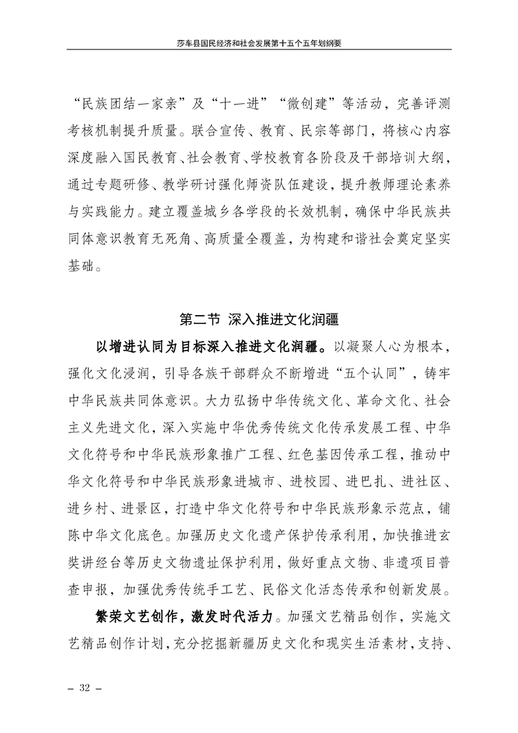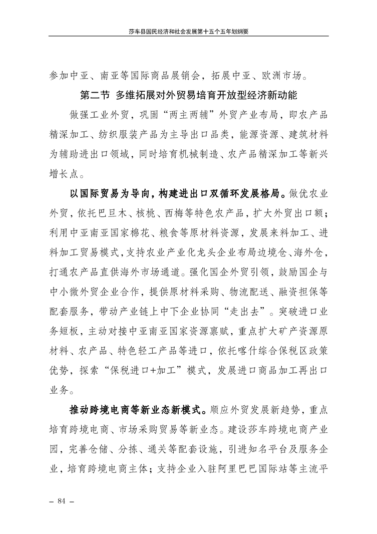莎车县国民经济和社会发展第十五个五年规划纲要
