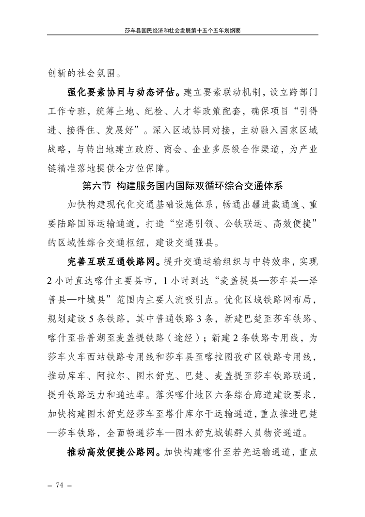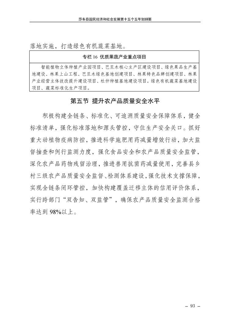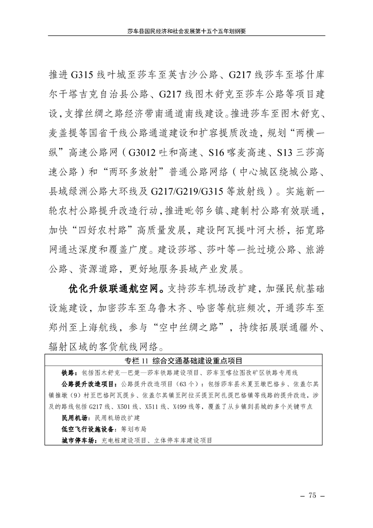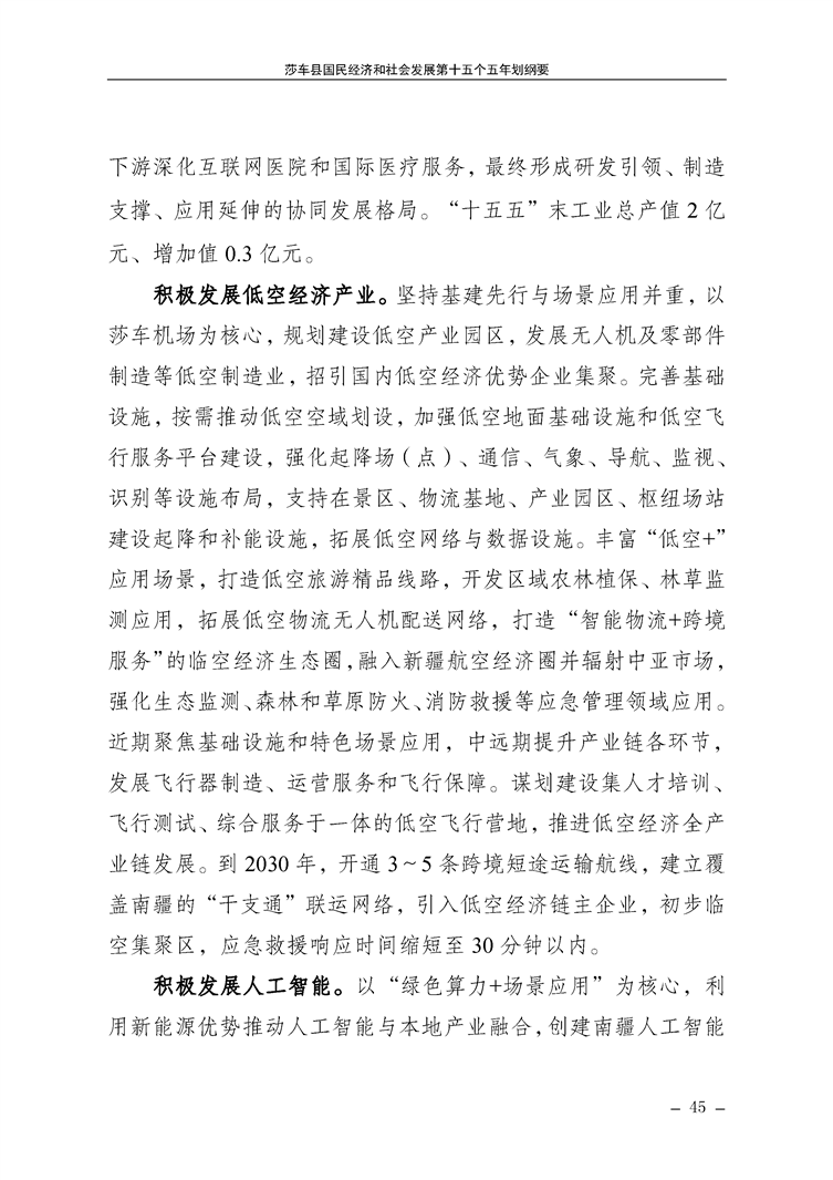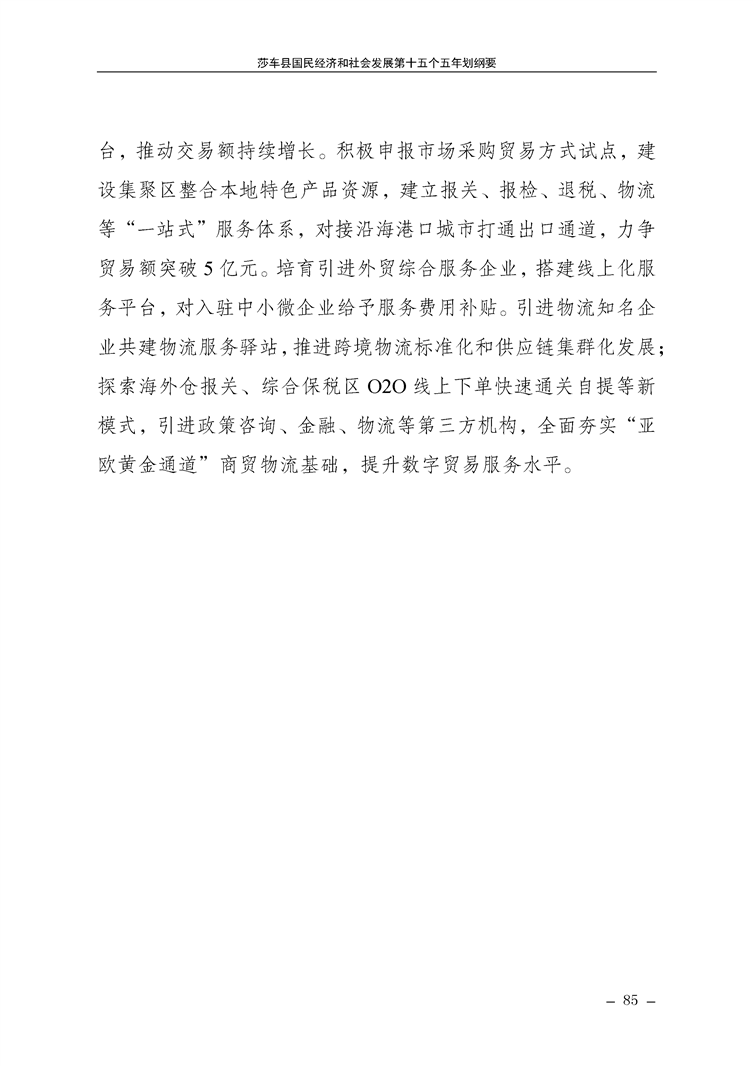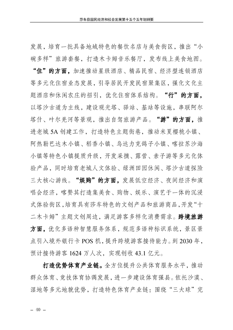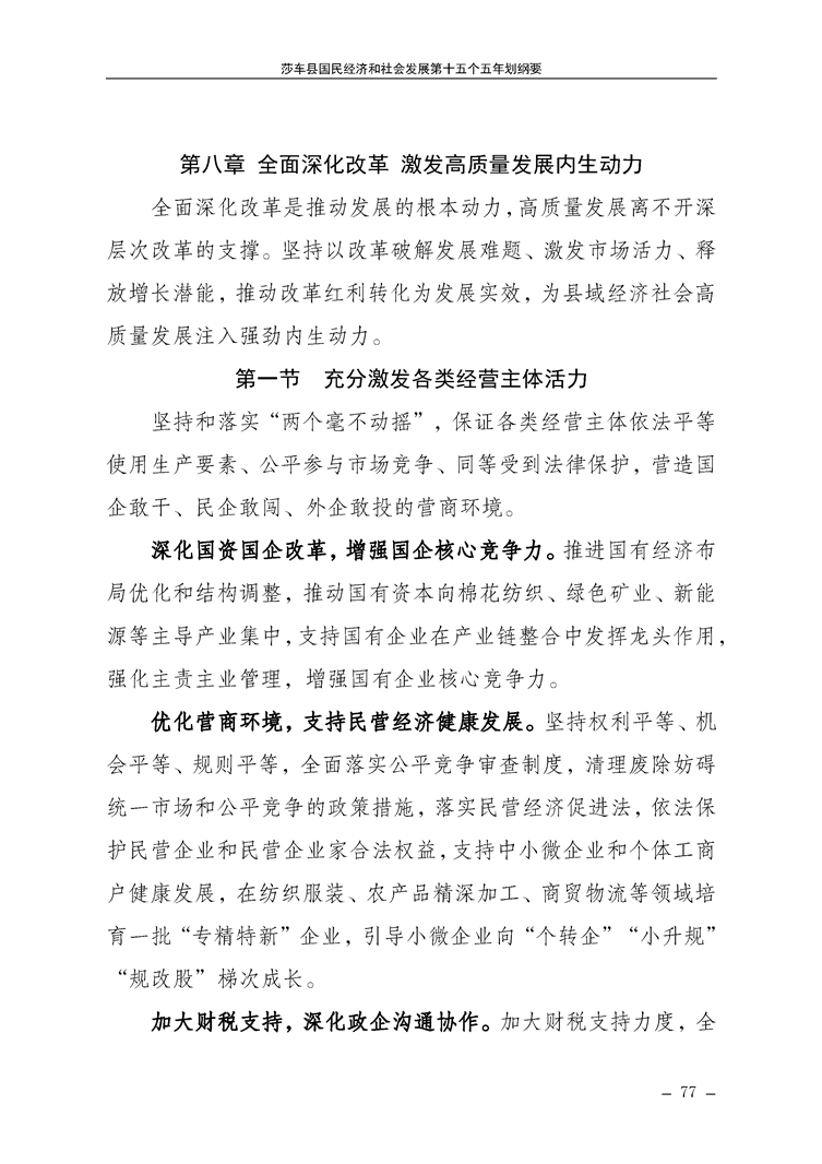 莎车县国民经济和社会发展第十五个五年规划纲要