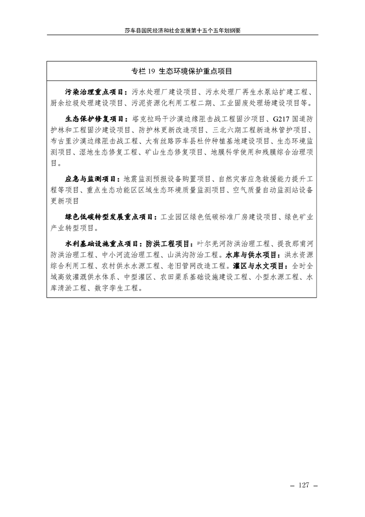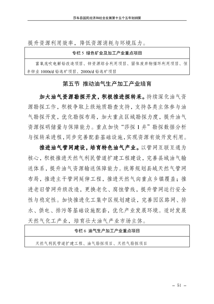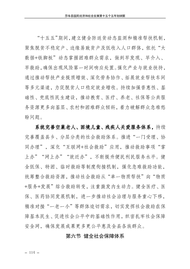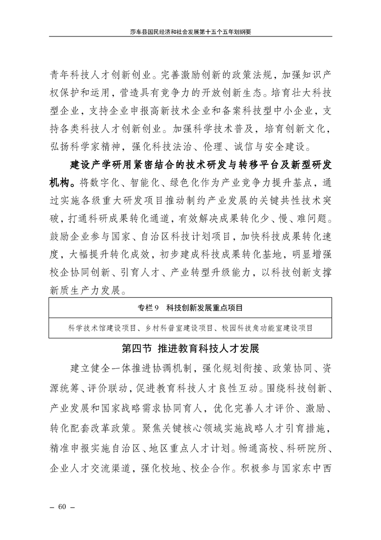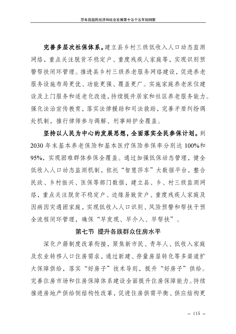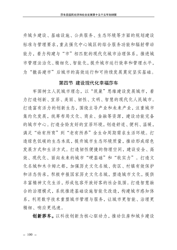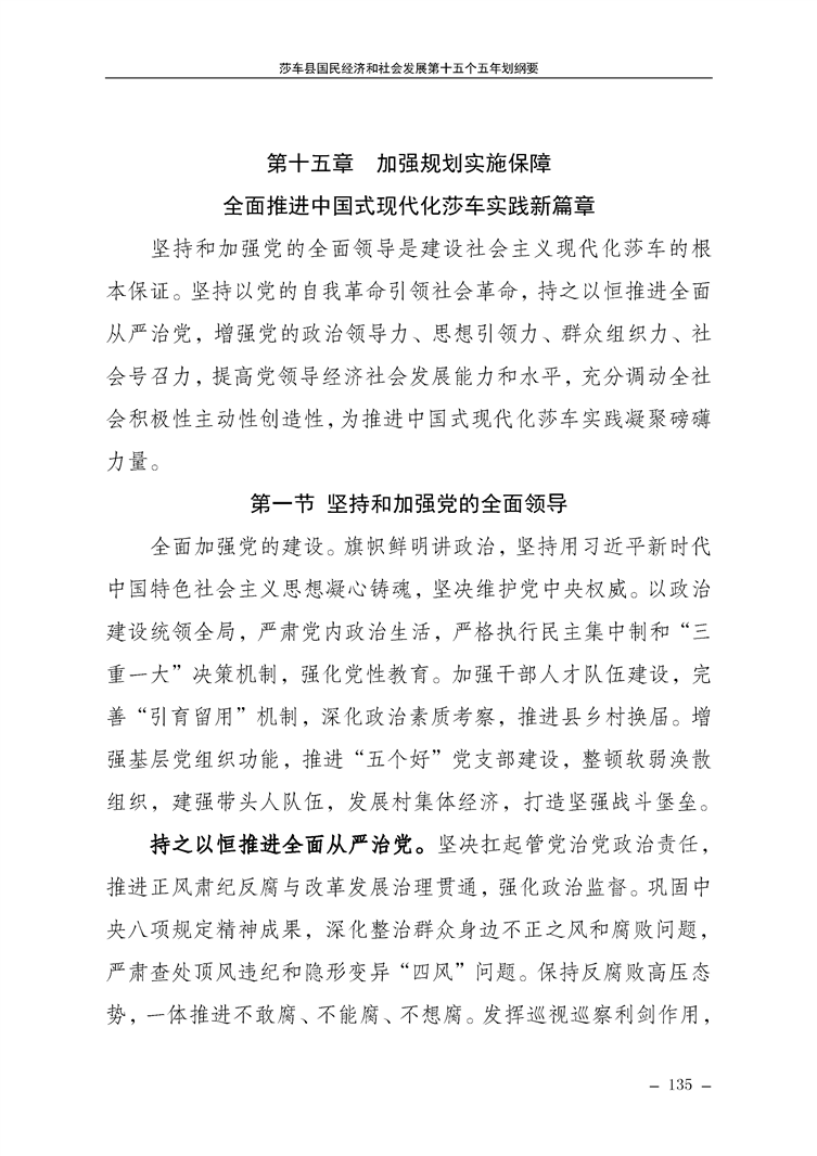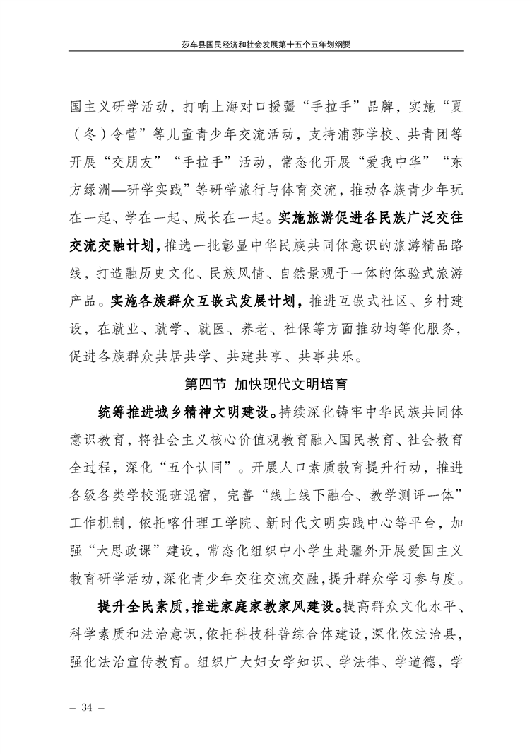莎车县国民经济和社会发展第十五个五年规划纲要