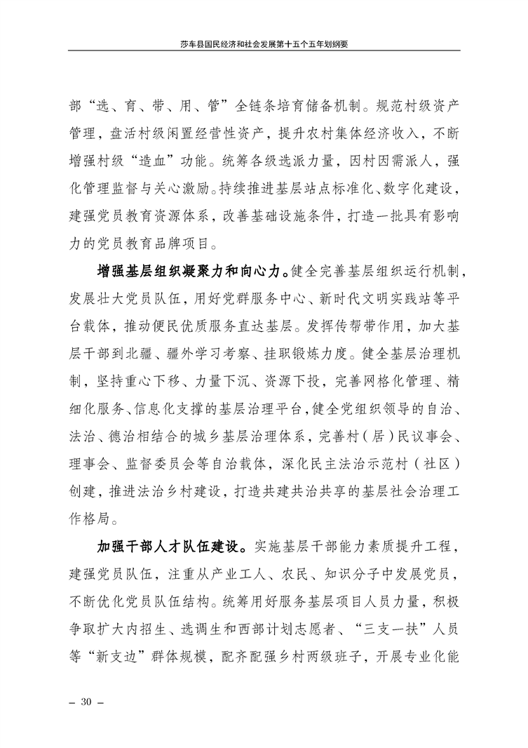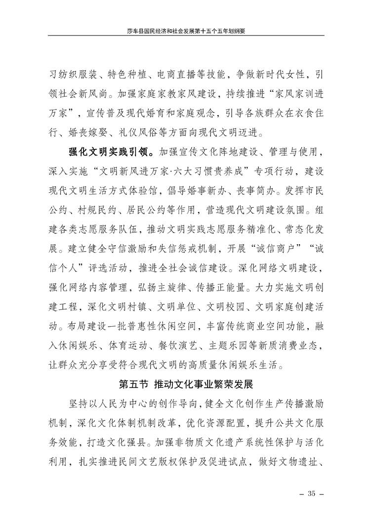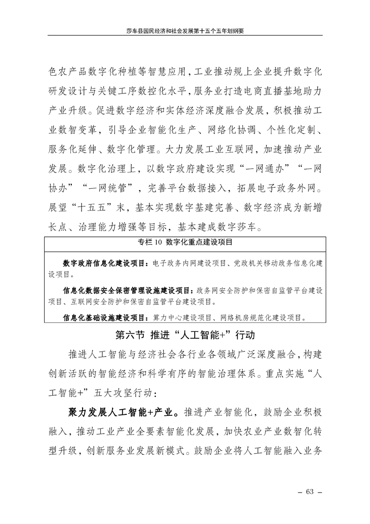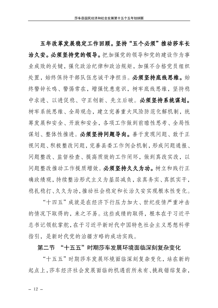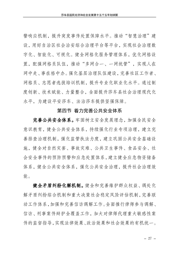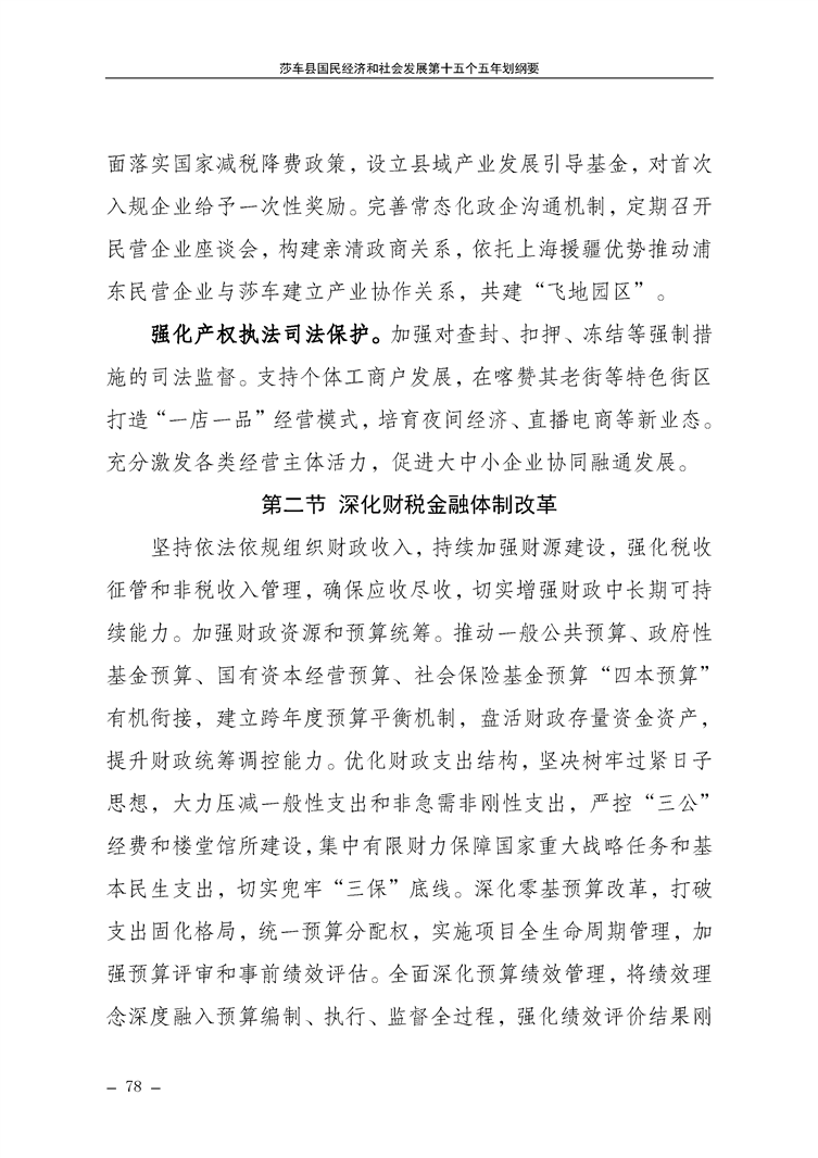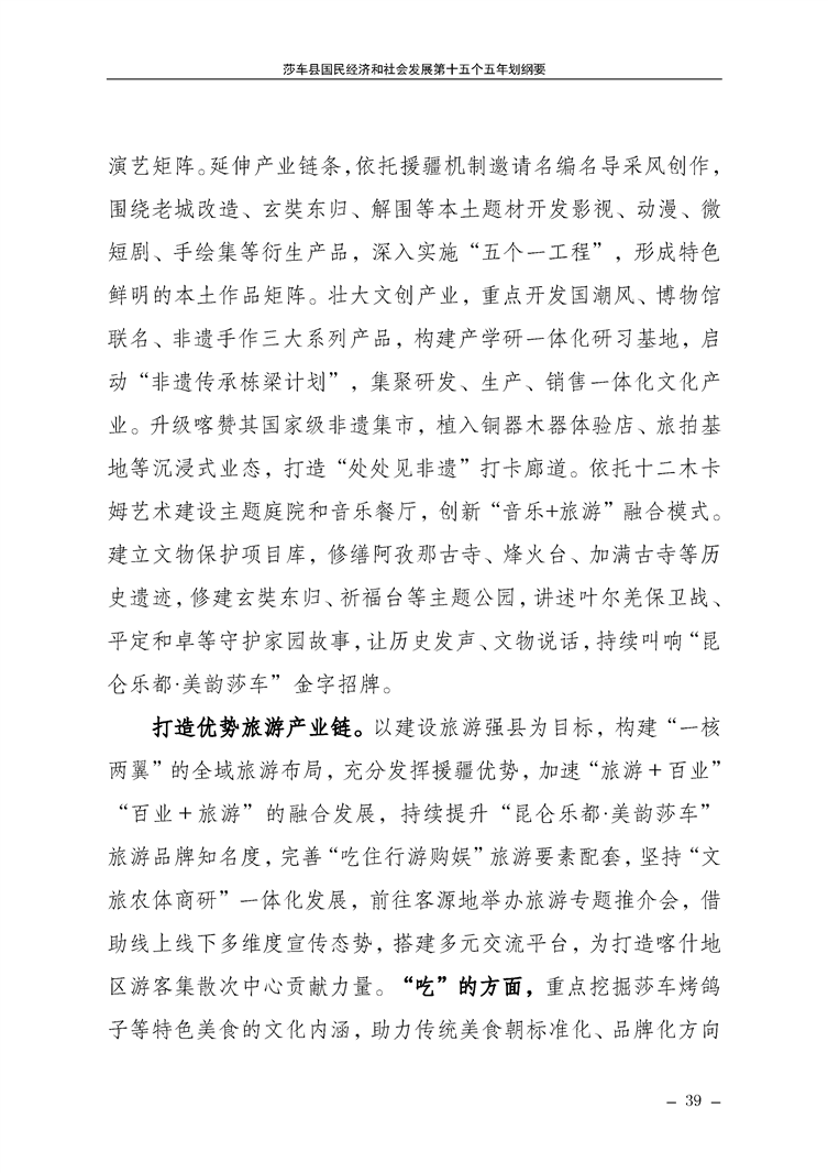 莎车县国民经济和社会发展第十五个五年规划纲要